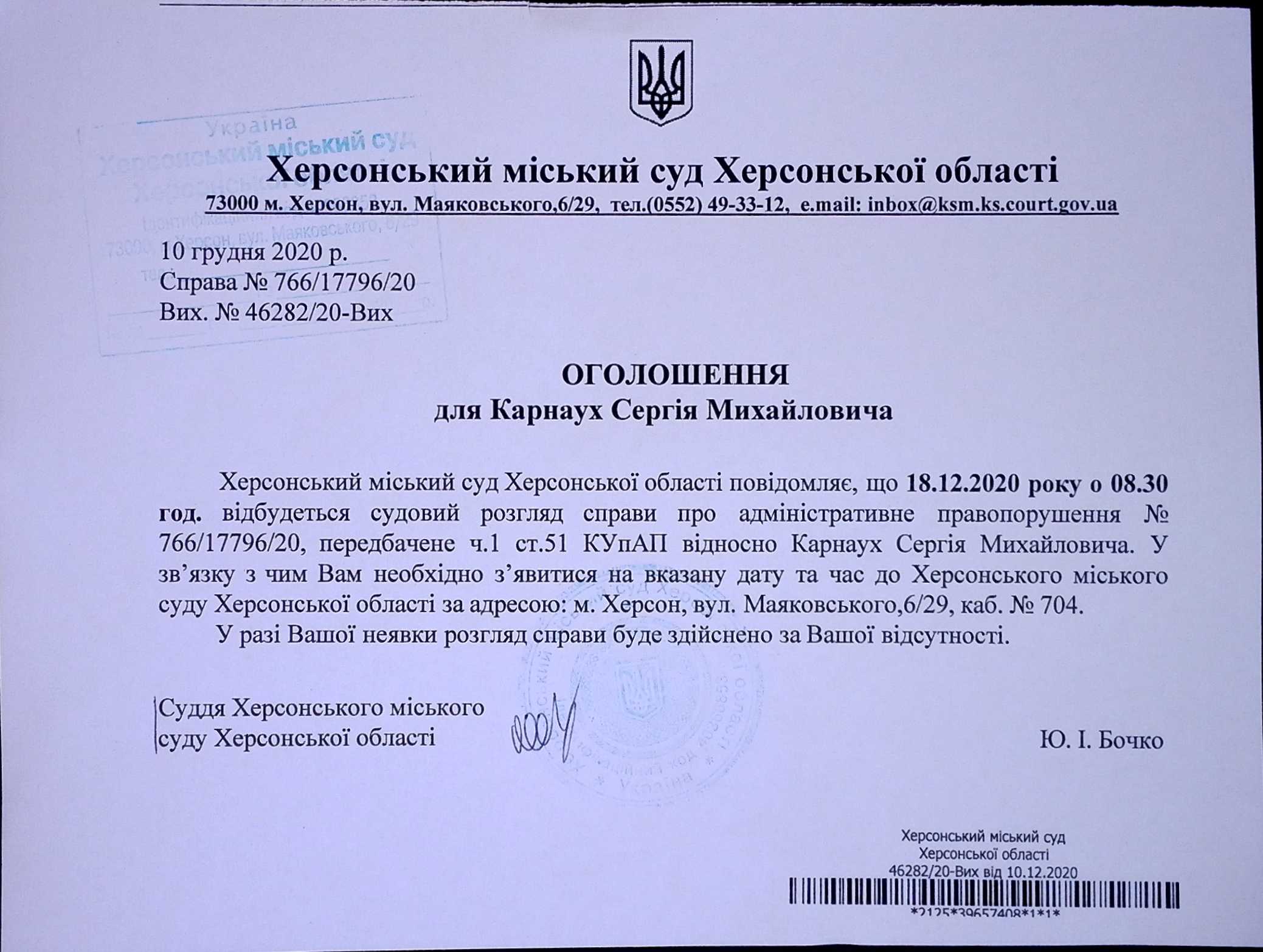 ОГОЛОШЕННЯ для Карнаух Сергія Михайловича