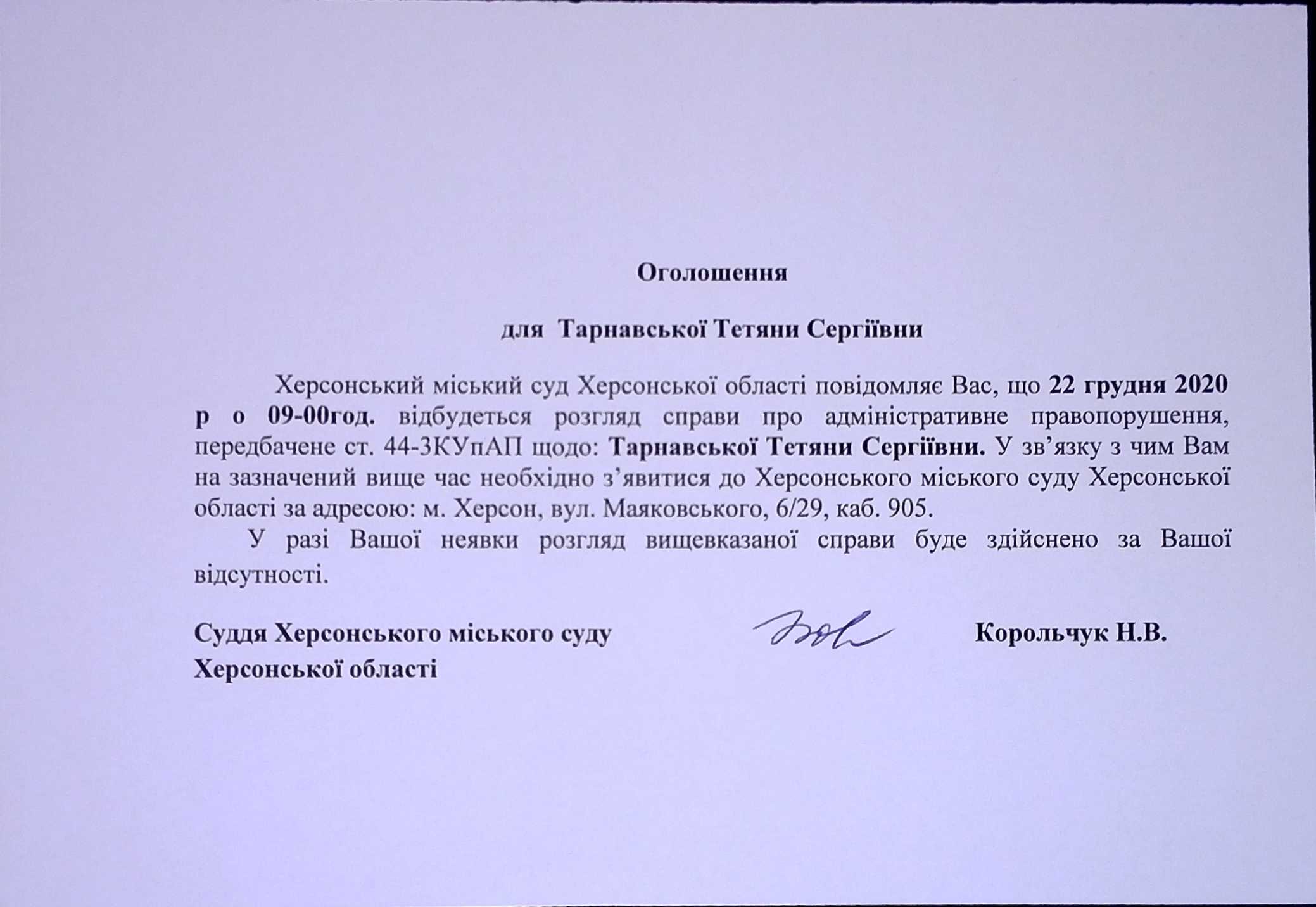 ОГОЛОШЕННЯ для Тарнавської Тетяни Сергіївни