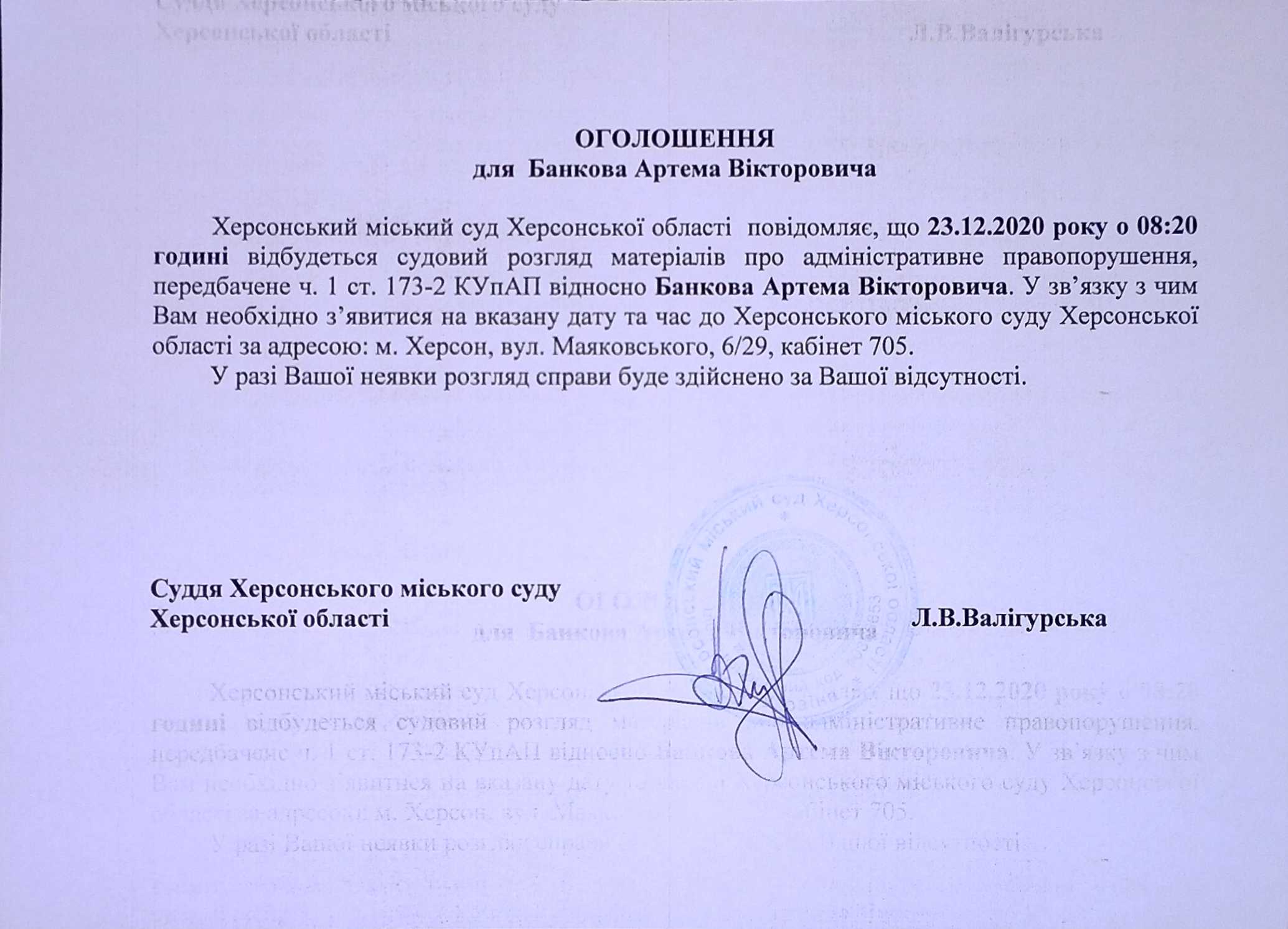ОГОЛОШЕННЯ для Банкова Артема Вікторовича