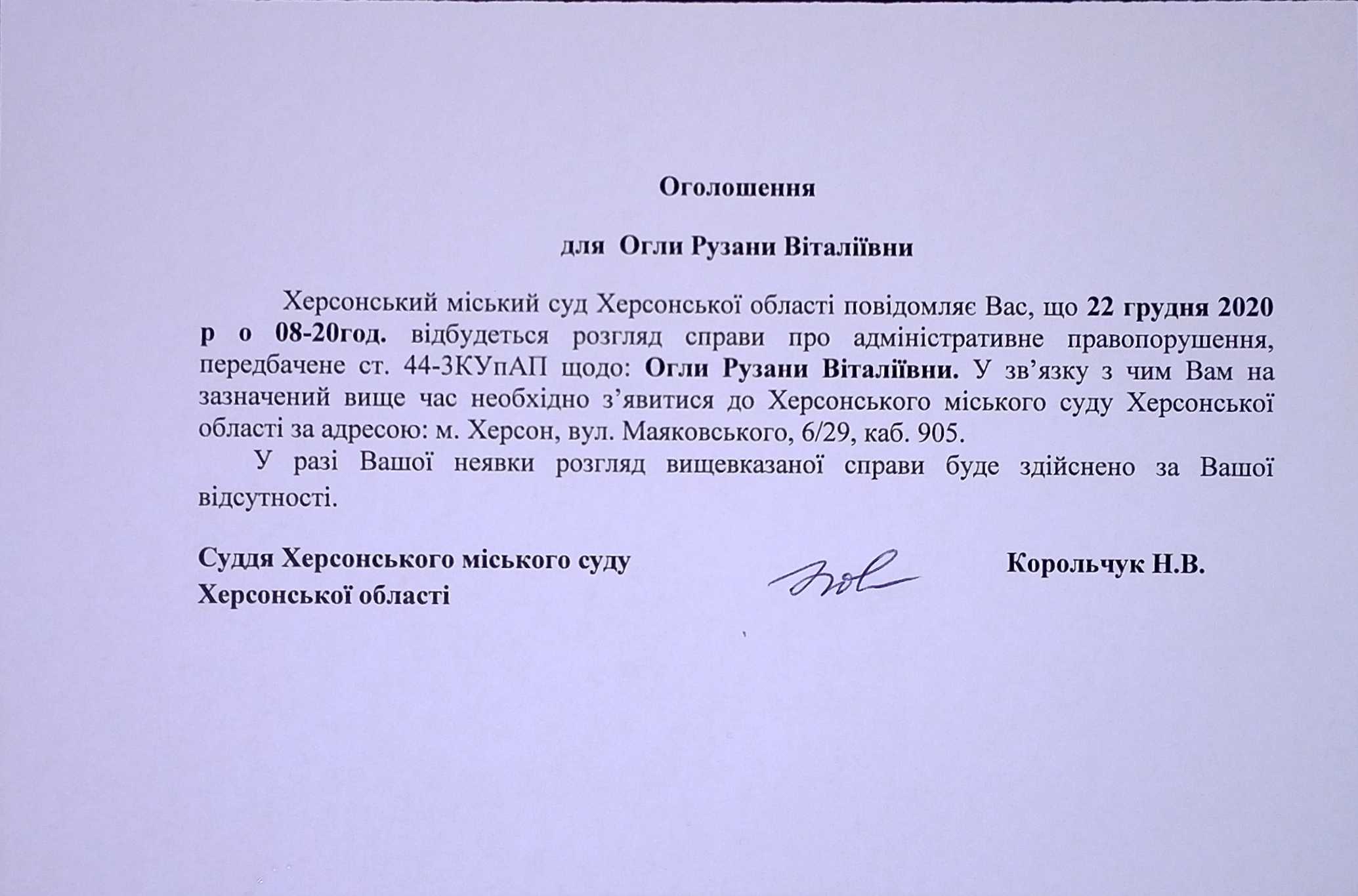 ОГОЛОШЕННЯ ПРО ВИКЛИК ДО СУДУ
