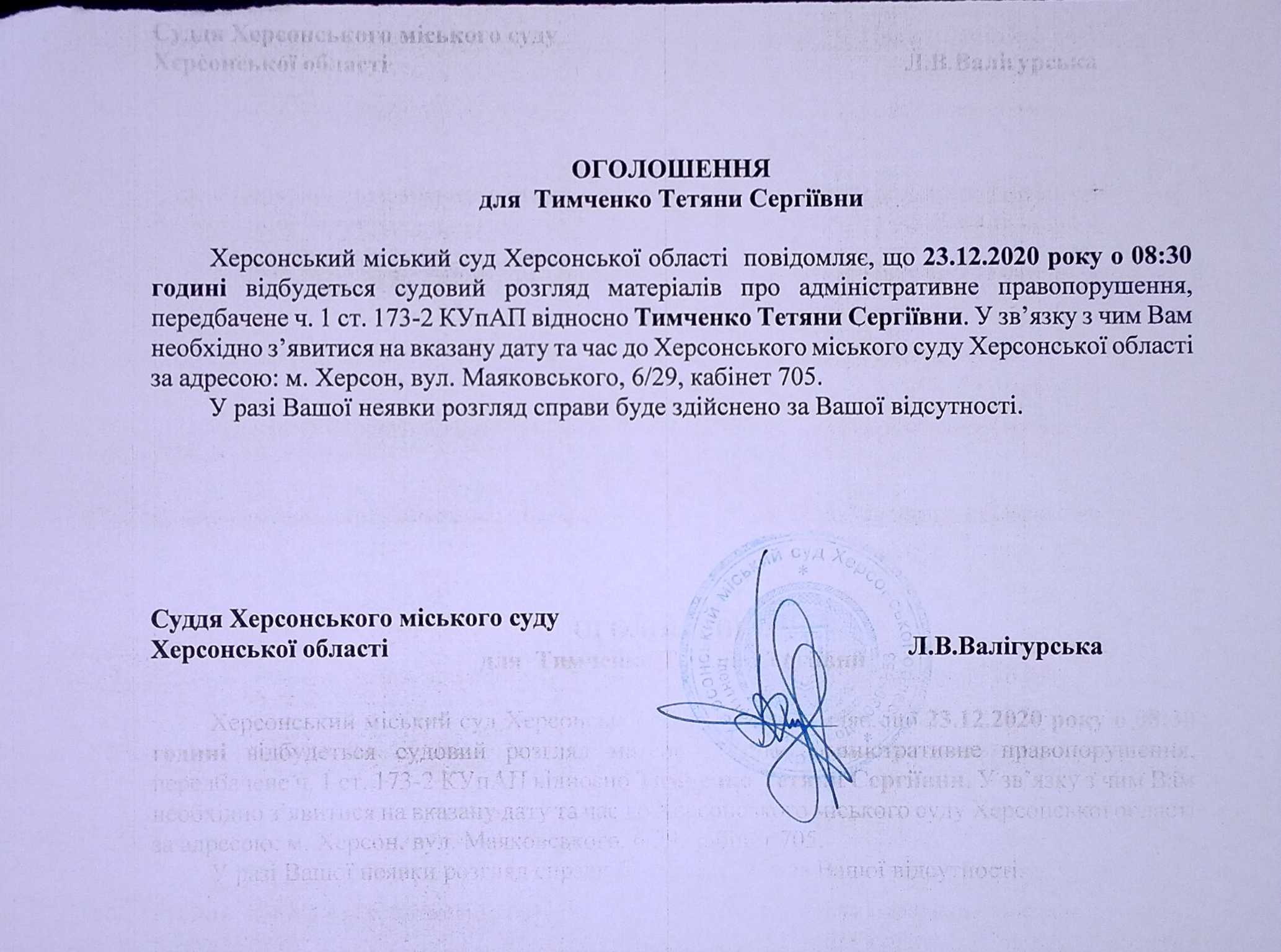 ОГОЛОШЕННЯ для Тимченко Тетяни Сергіївни