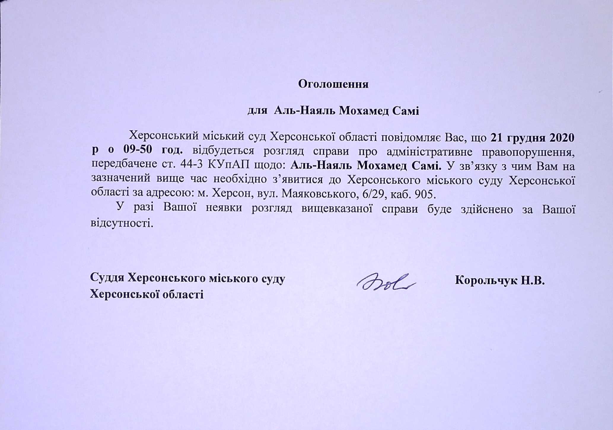 ОГОЛОШЕННЯ для Аль-Наяль Мохамед Самі