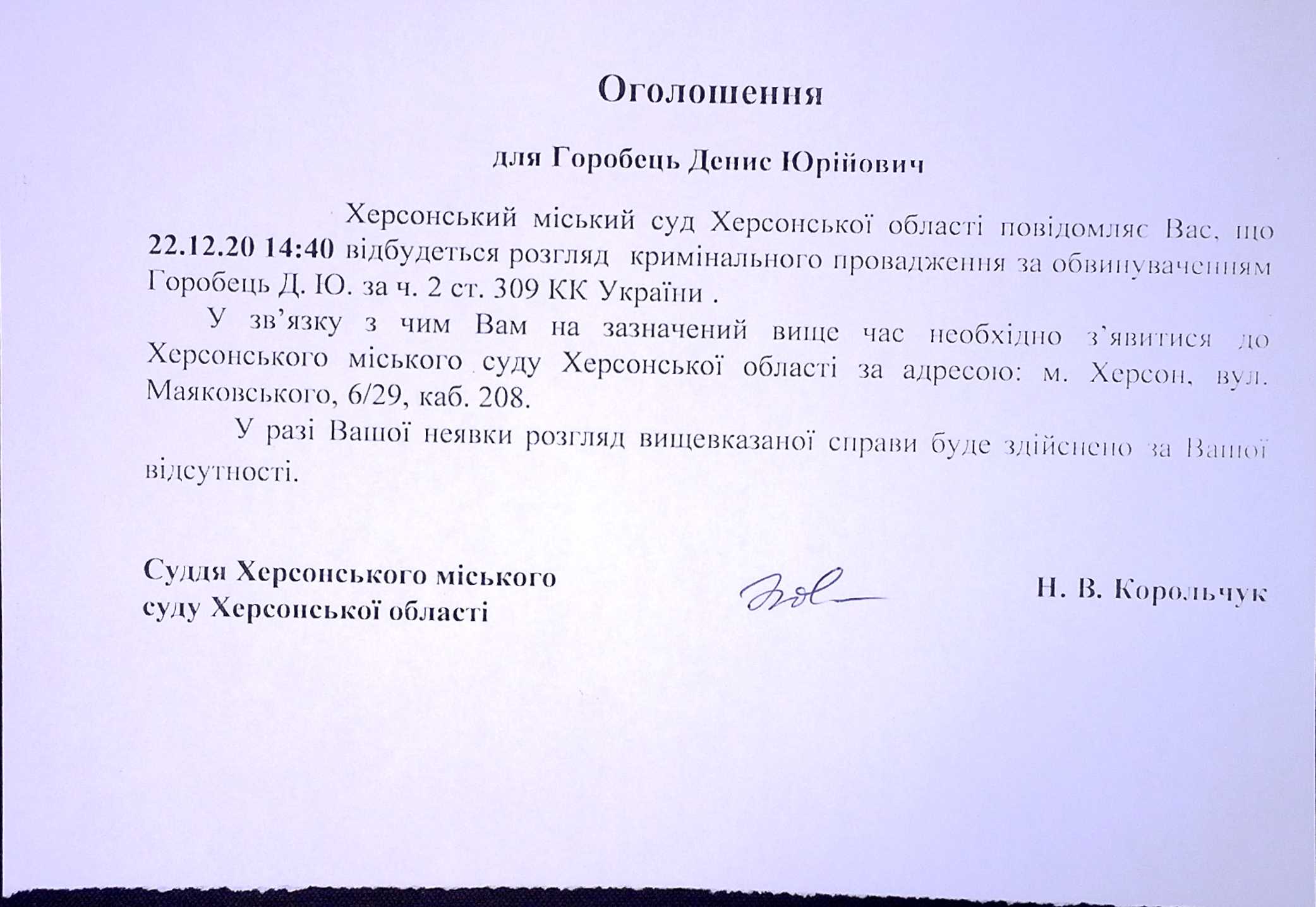 ОГОЛОШЕННЯ ПРО ВИКЛИК ДО СУДУ