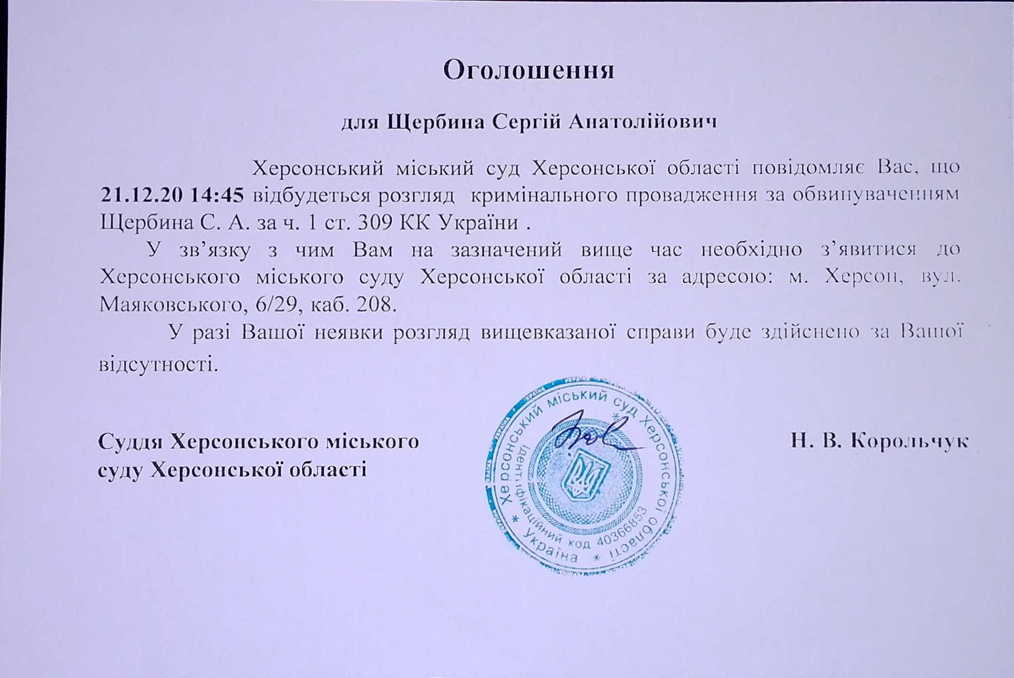 ОГОЛОШЕННЯ для Щербина Сергія Анатолійовича