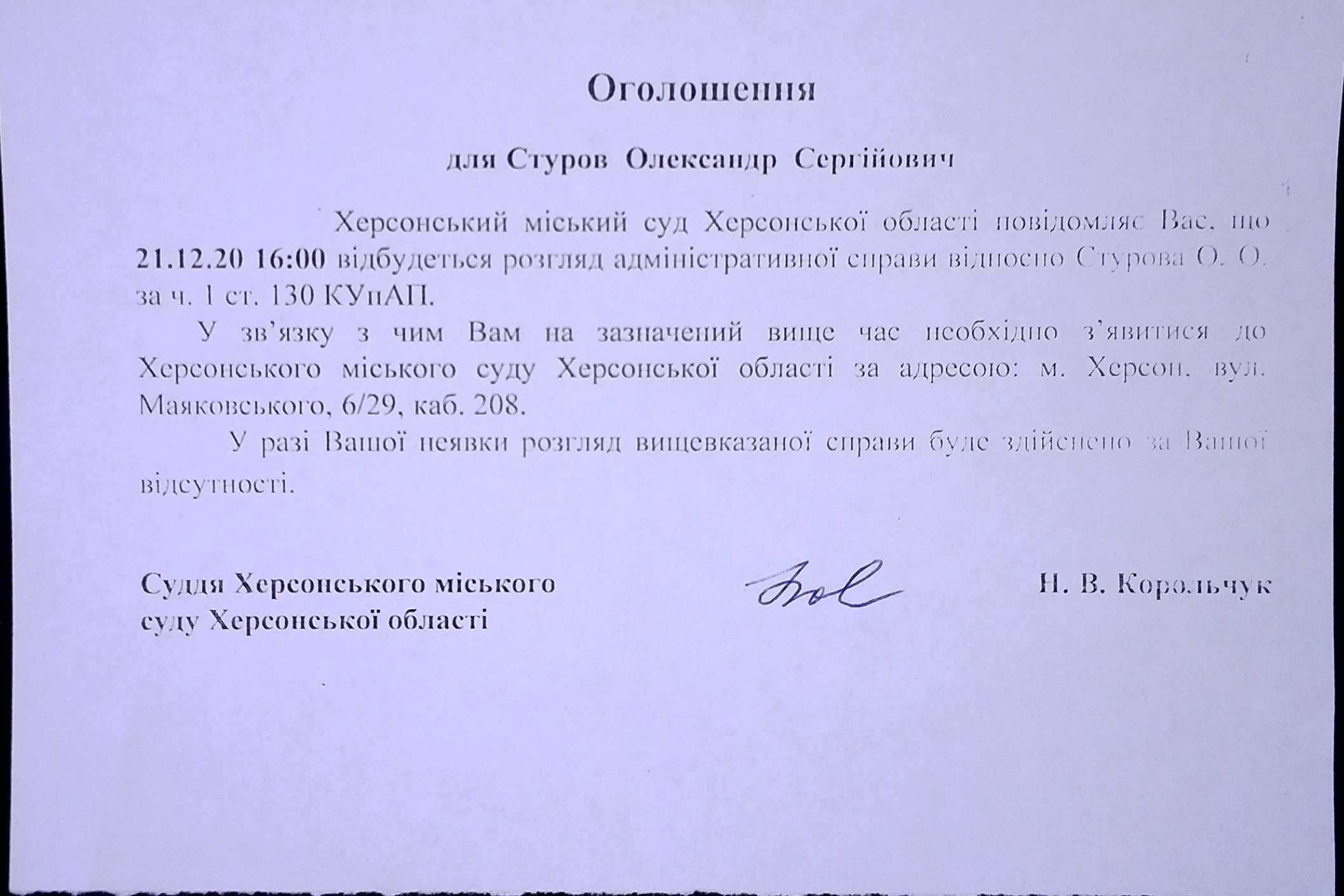 ОГОЛОШЕННЯ для Стурова Олександра Сергійовича