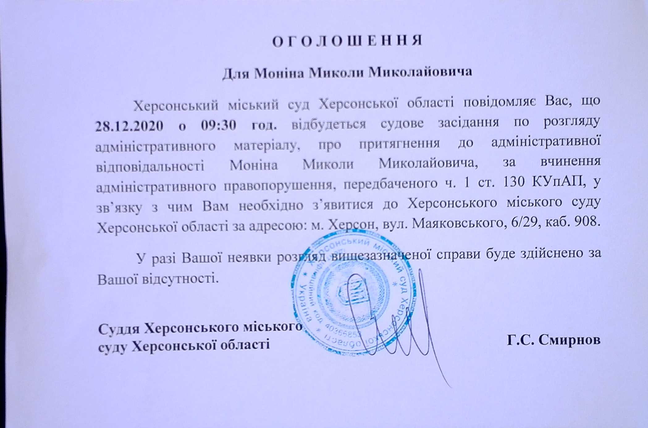 ОГОЛОШЕННЯ для Моніна Миколи Миколайовича