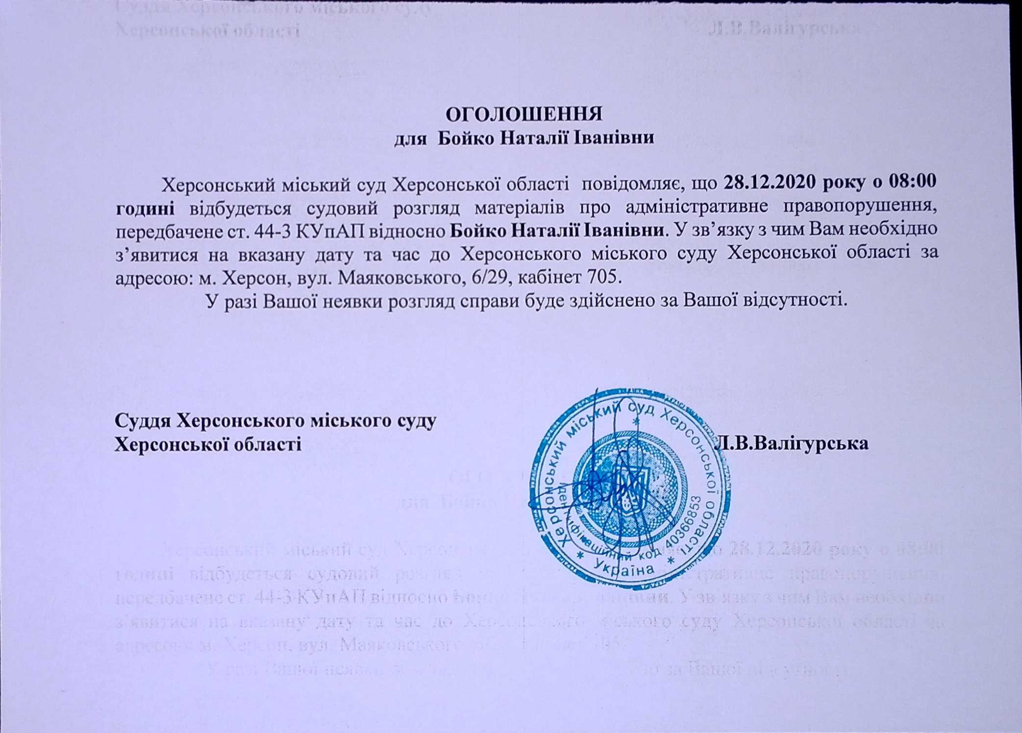 ОГОЛОШЕННЯ для Бойко Наталії Іванівни
