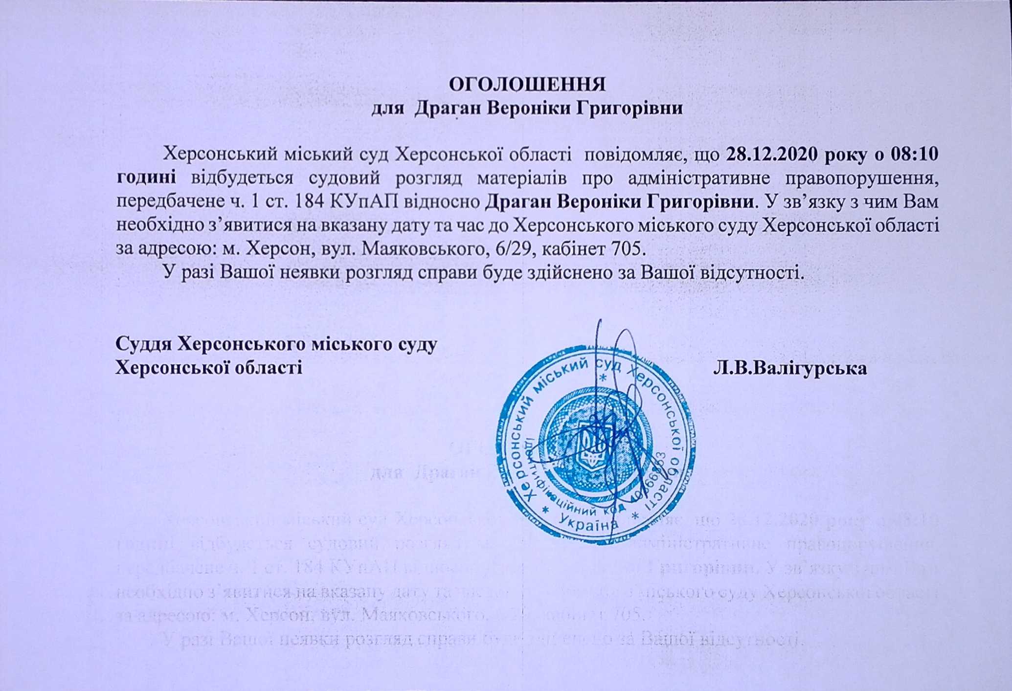 ОГОЛОШЕННЯ для Драган Вероніки Григорівни