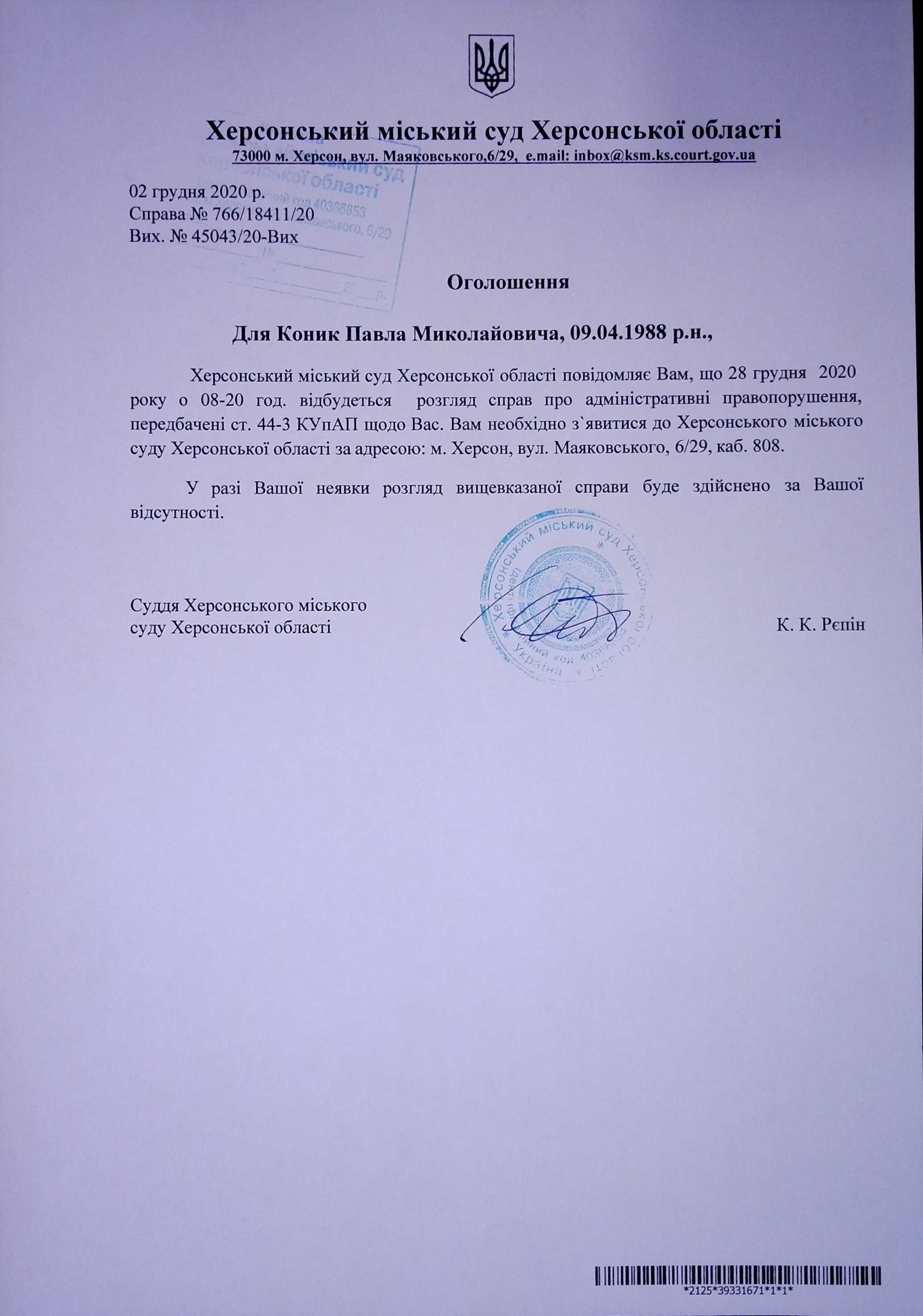 ОГОЛОШЕННЯ для Коник Павла Миколайовича