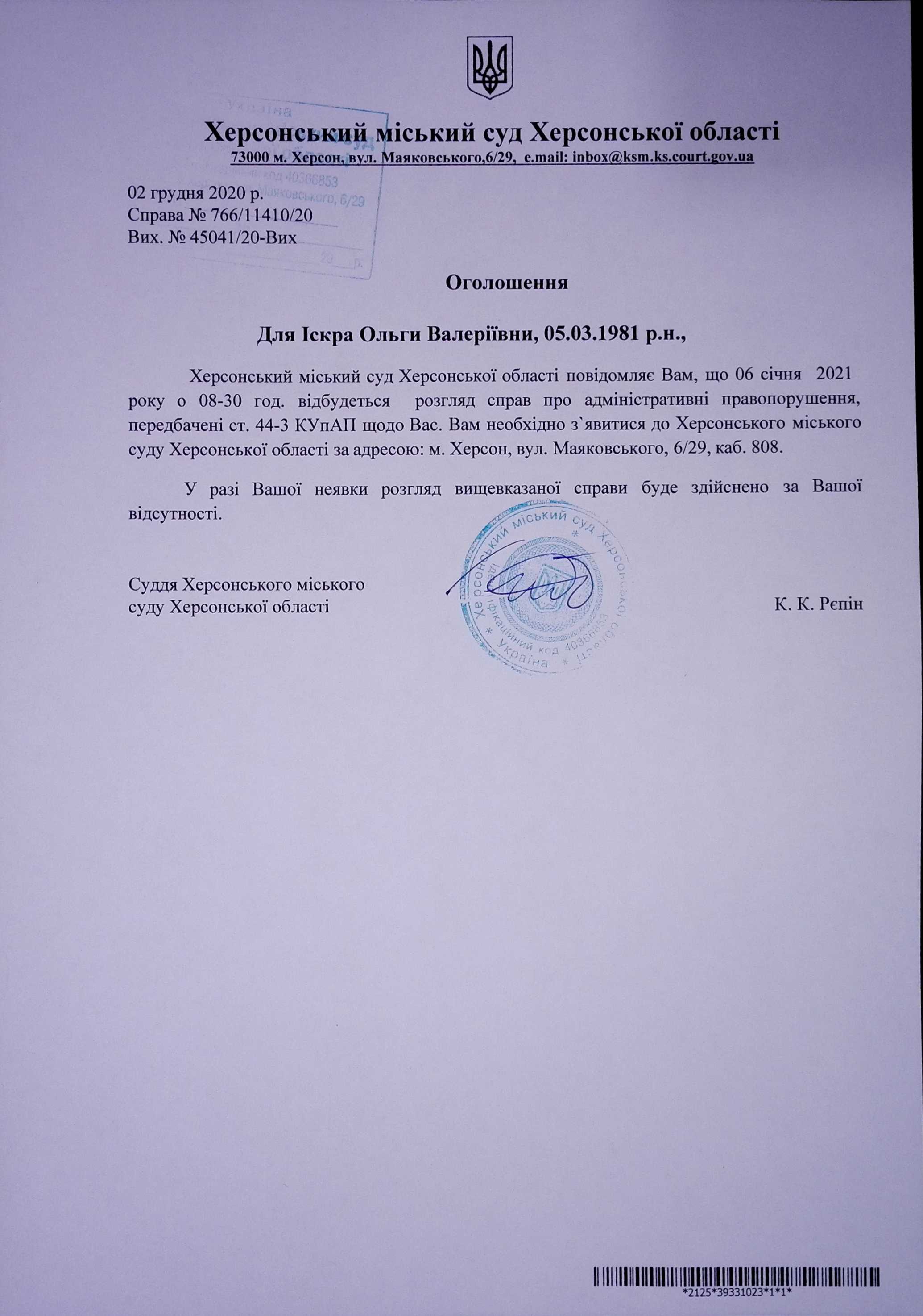 ОГОЛОШЕННЯ для Іскра Ольги Валеріївни