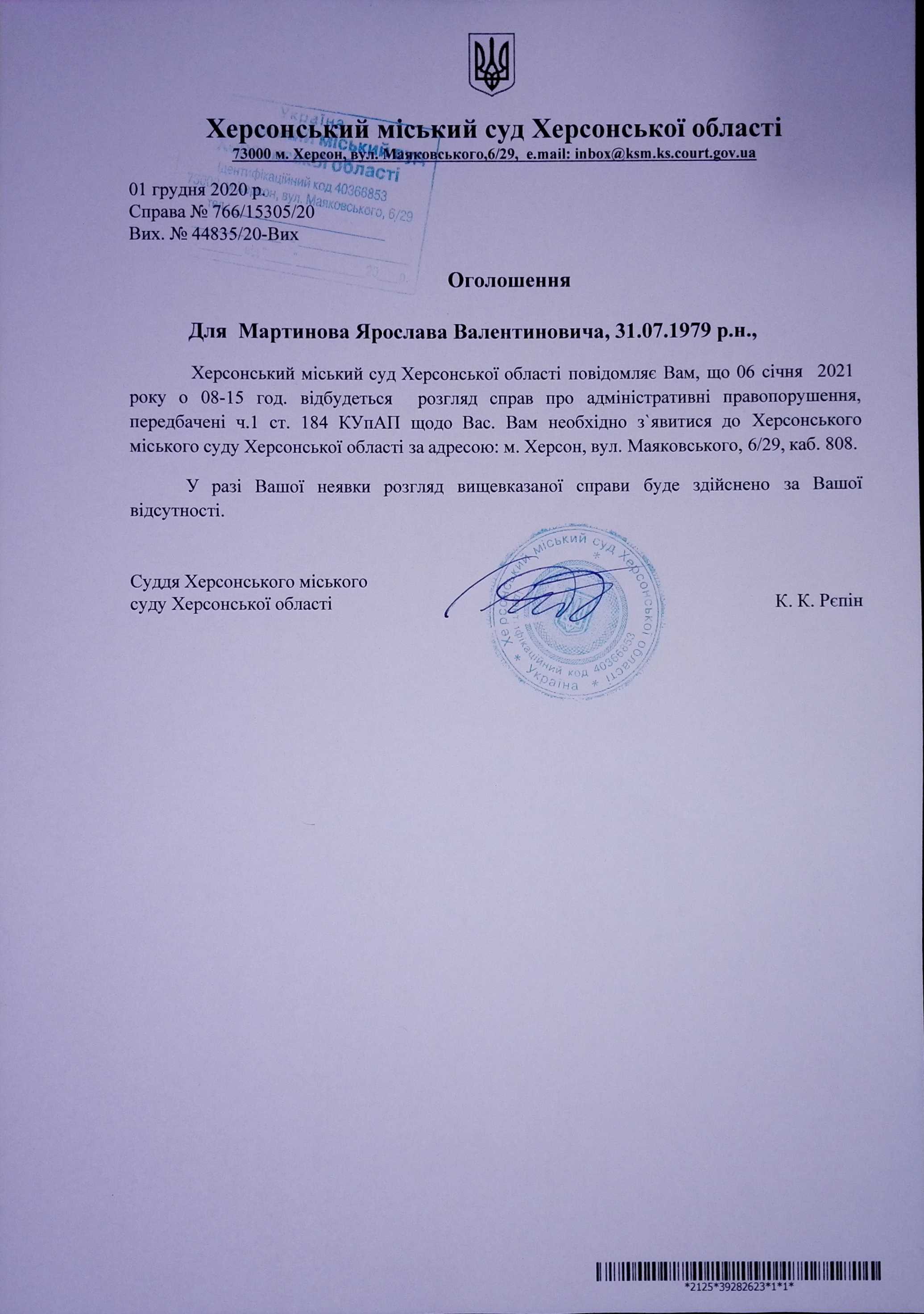 ОГОЛОШЕННЯ для Мартинова Ярослава Валентиновича