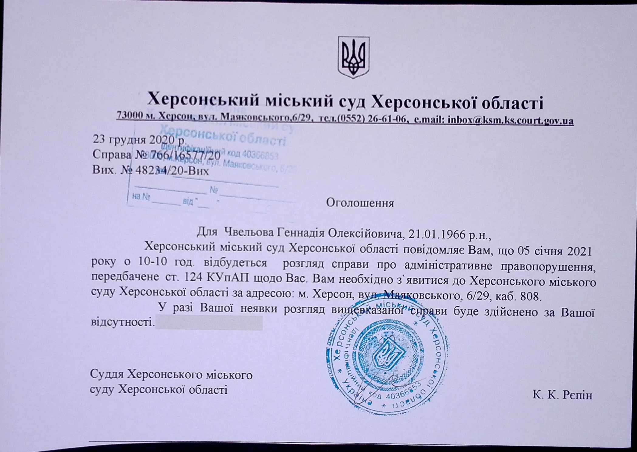 ОГОЛОШЕННЯ ПРО ВИКЛИК ДО СУДУ