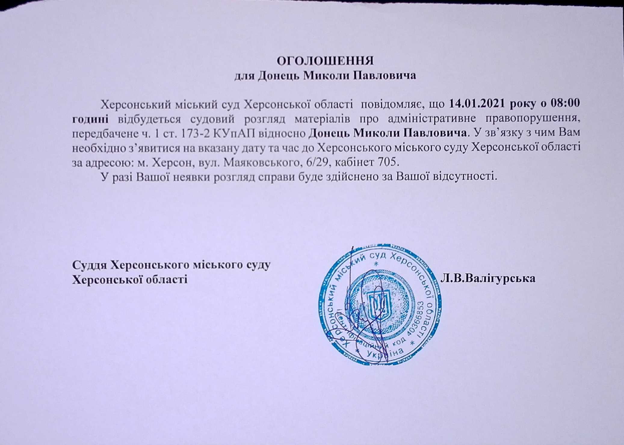 ОГОЛОШЕННЯ для Донець Миколи Павловича
