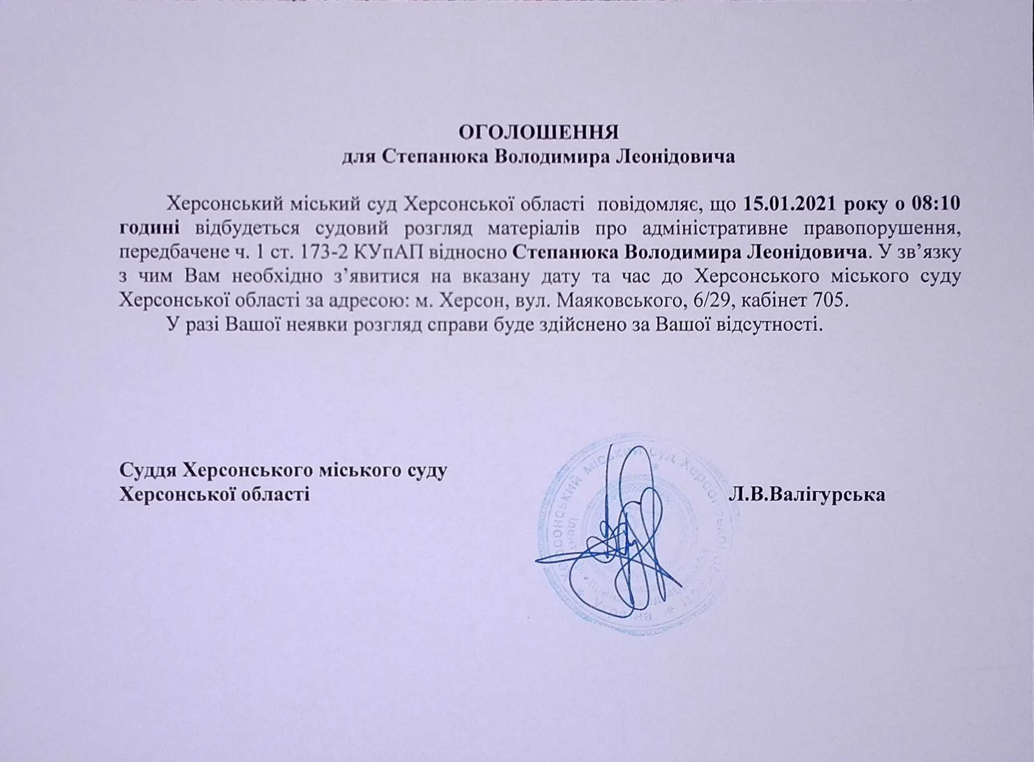 ОГОЛОШЕННЯ для Степанюка Володимира Леонідовича