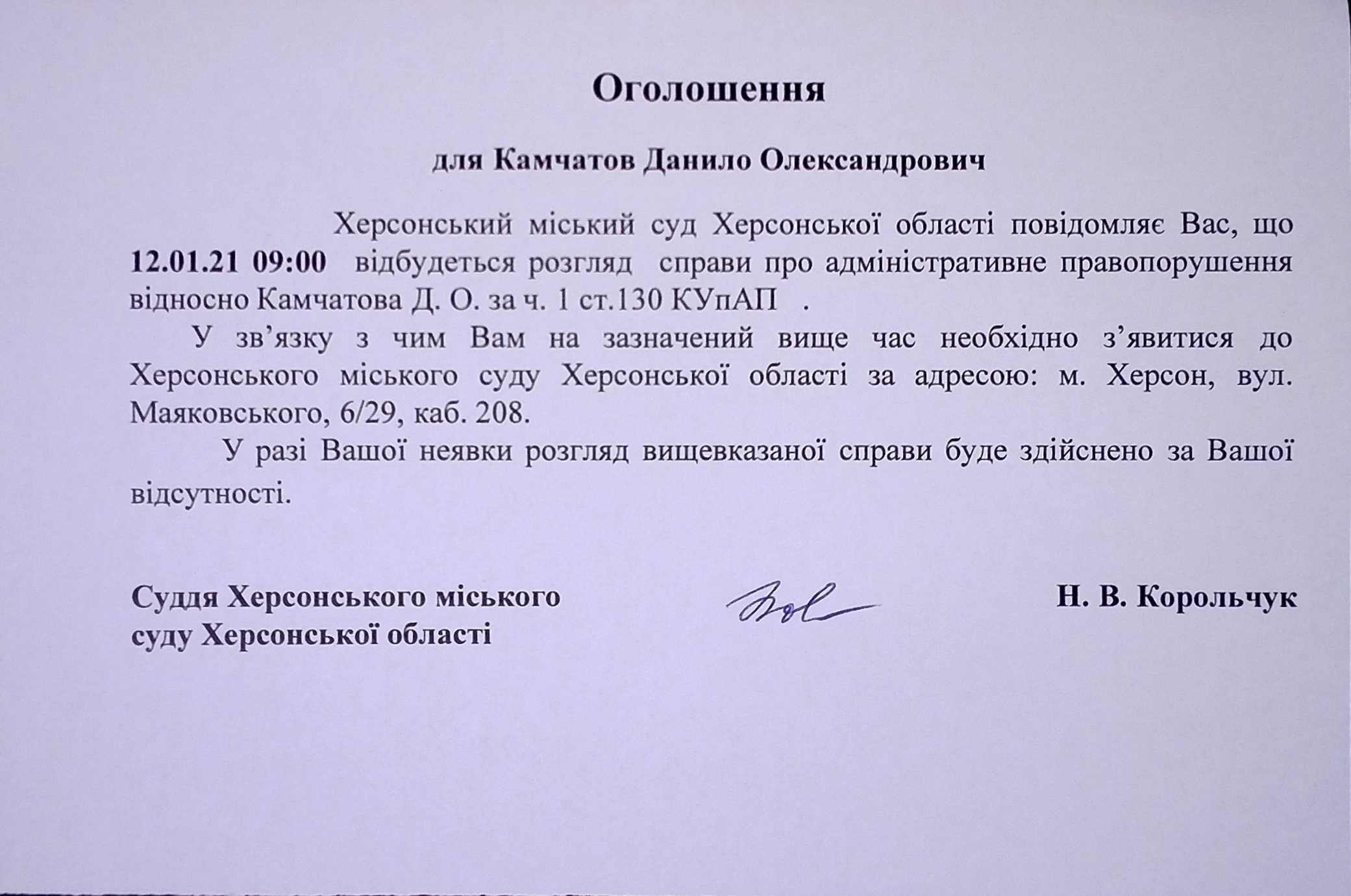 ОГОЛОШЕННЯ для Камчатова Данила Олександровича