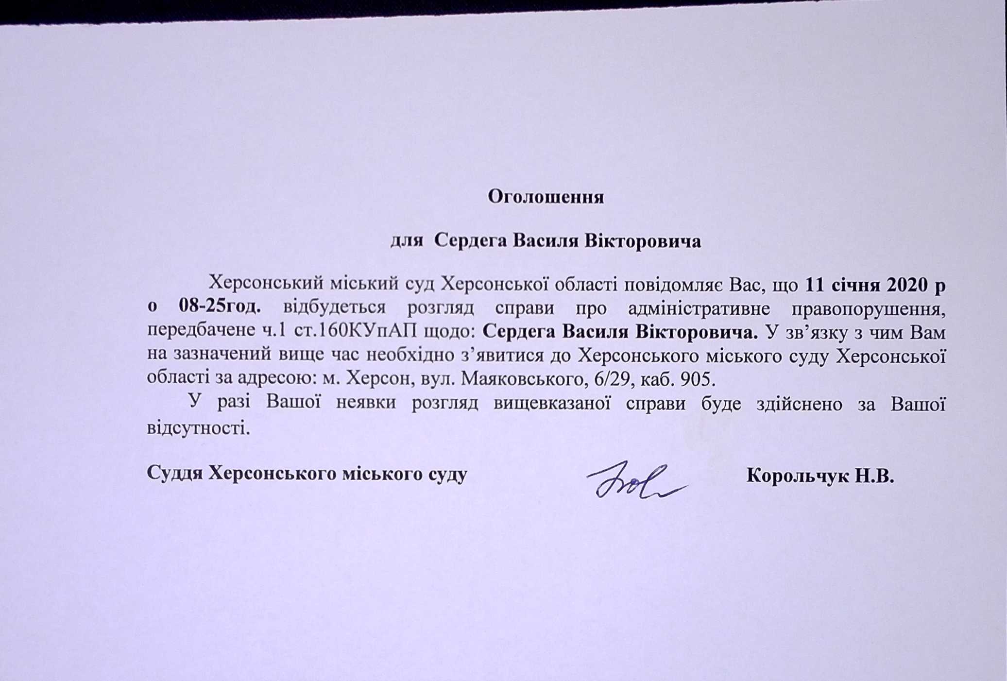 ОГОЛОШЕННЯ ПРО ВИКЛИК ДО СУДУ