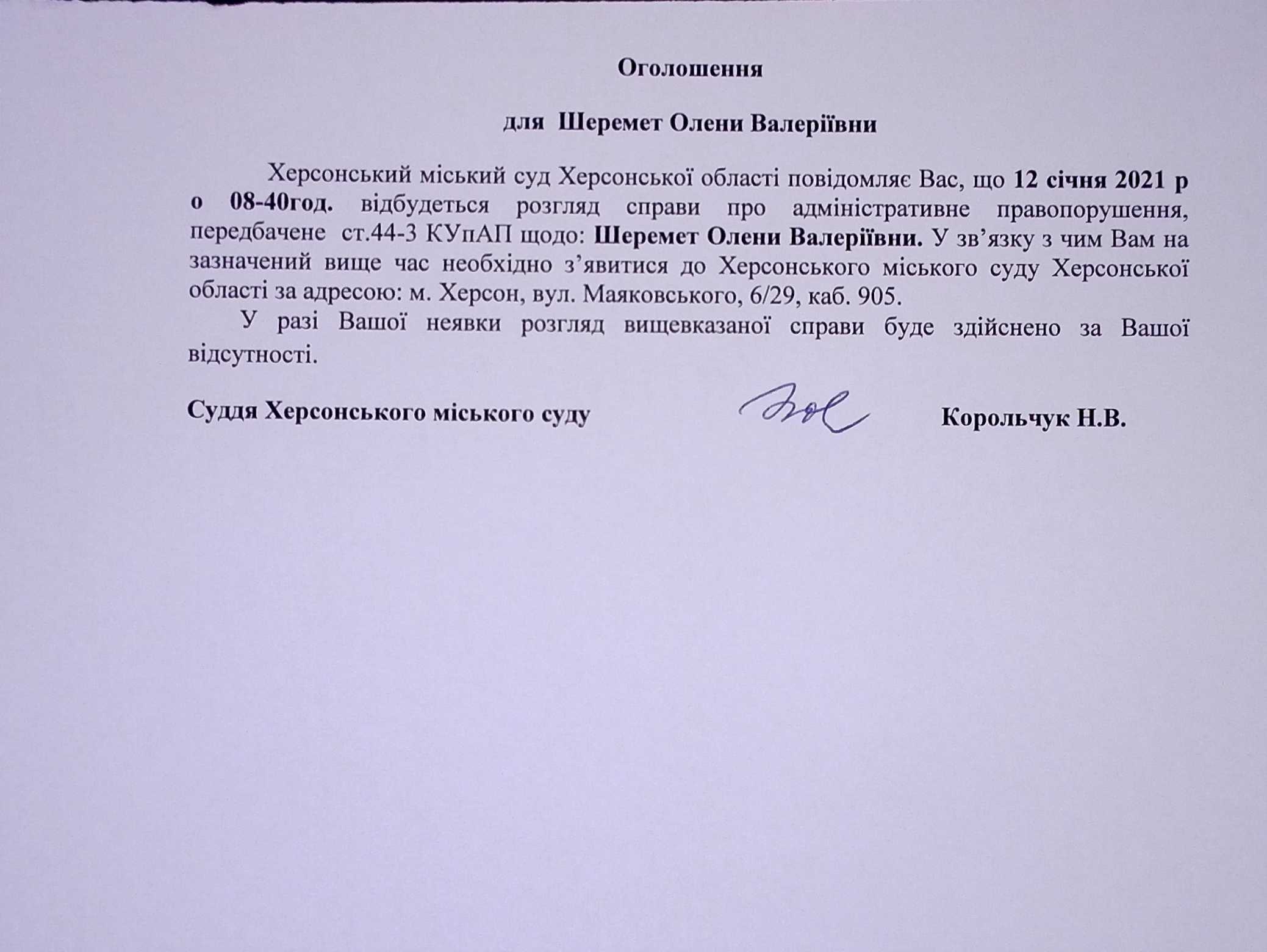 ОГОЛОШЕННЯ ПРО ВИКЛИК ДО СУДУ