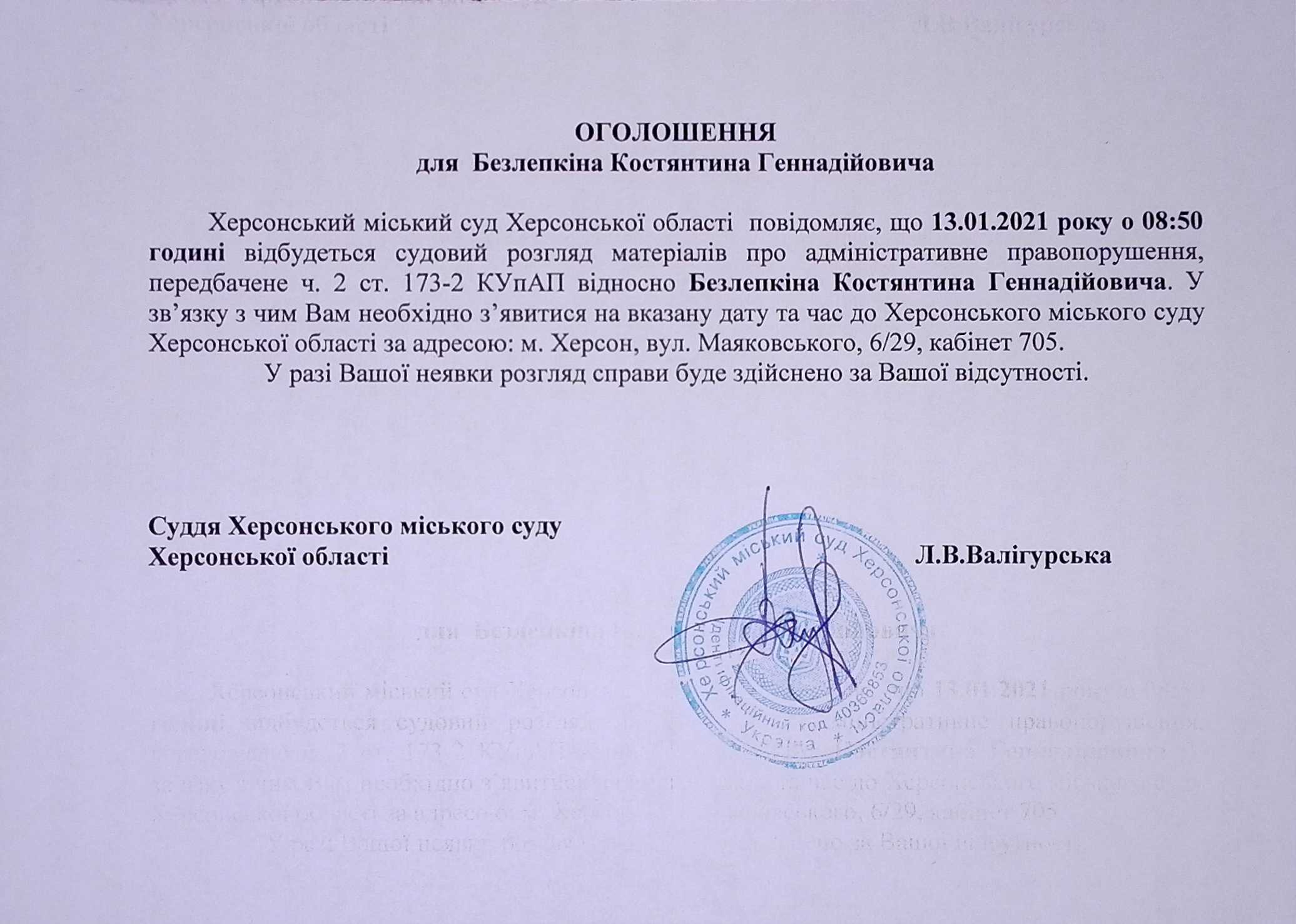 ОГОЛОШЕННЯ для Безлепкіна Костянтина Геннадійовича