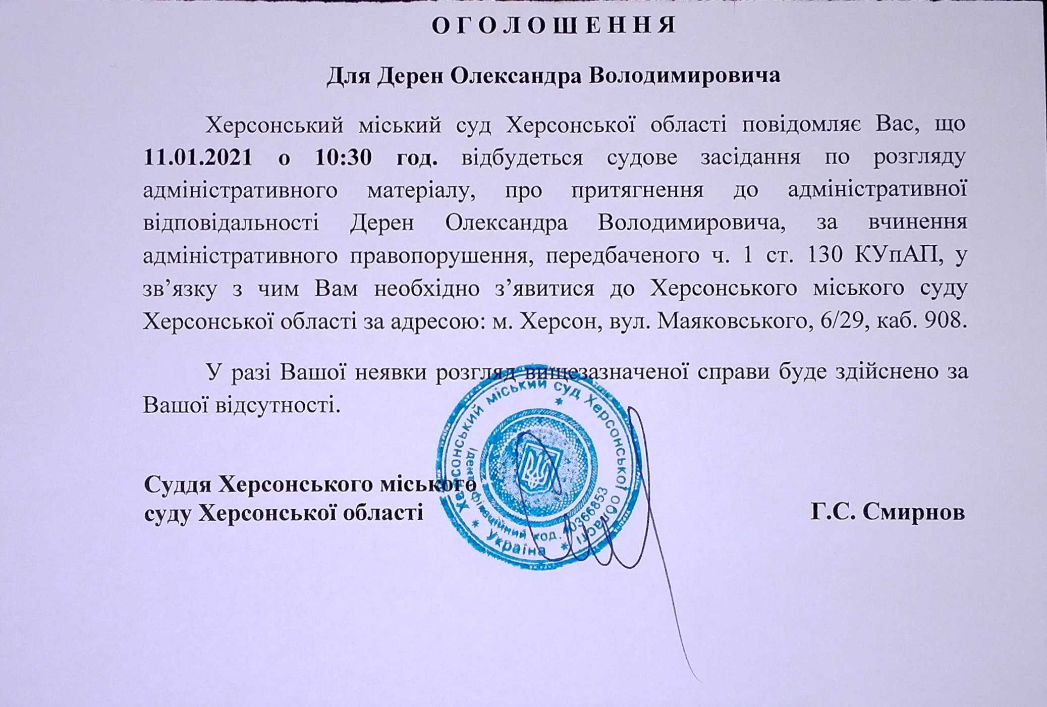 ОГОЛОШЕННЯ для Дерен Олександра Володимировича