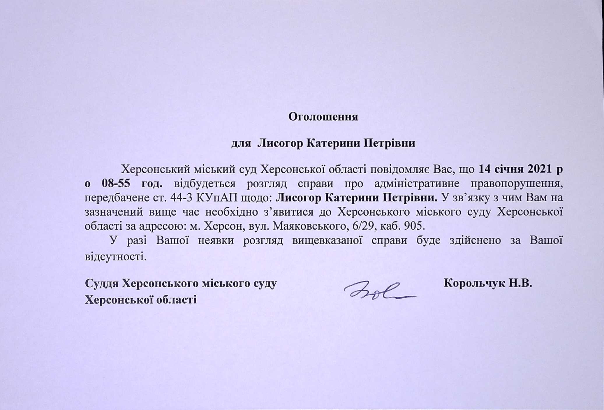 ОГОЛОШЕННЯ для Лисогор Катерини Петрівни