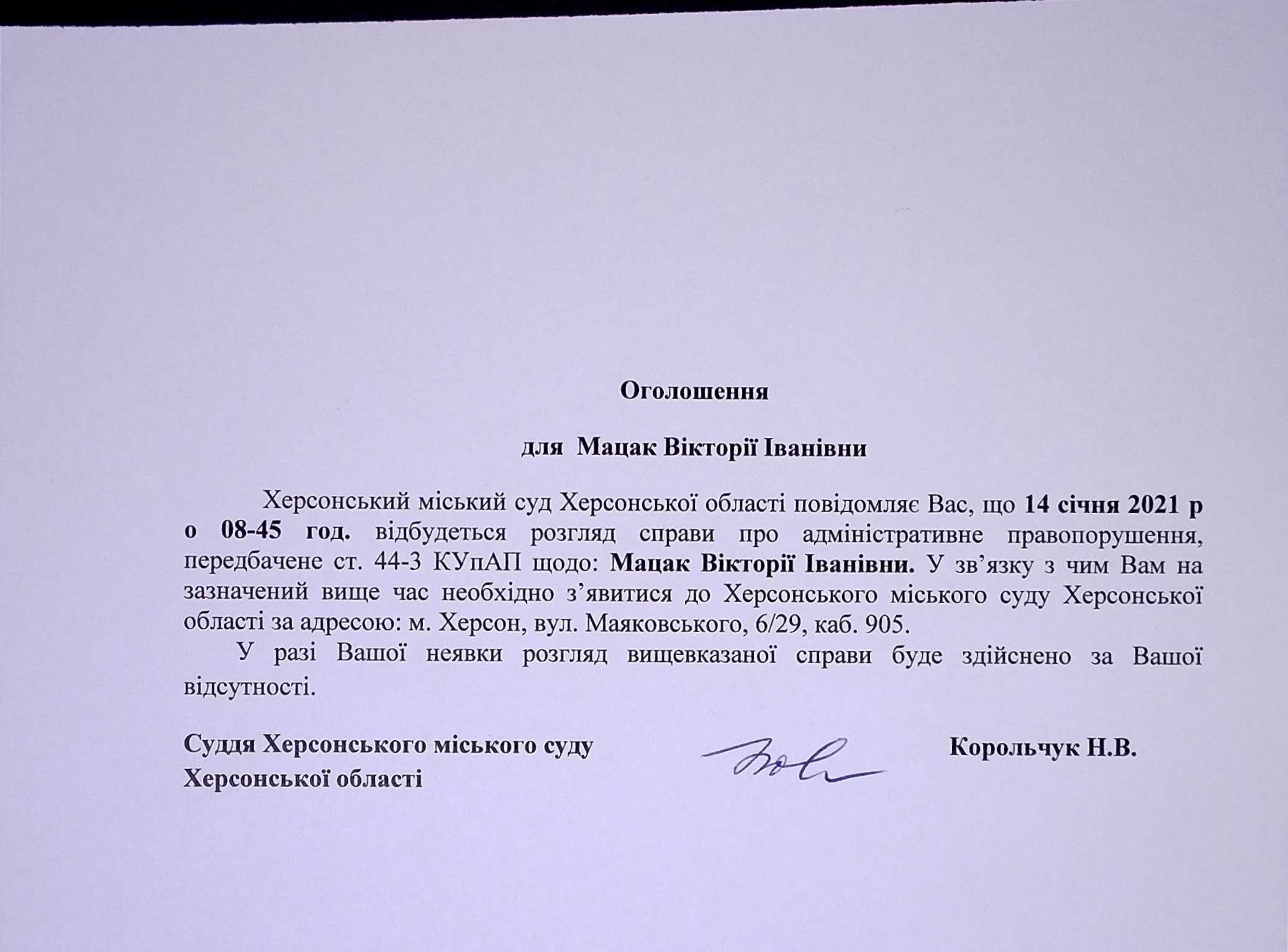 ОГОЛОШЕННЯ для Мацак Вікторії Іванівни