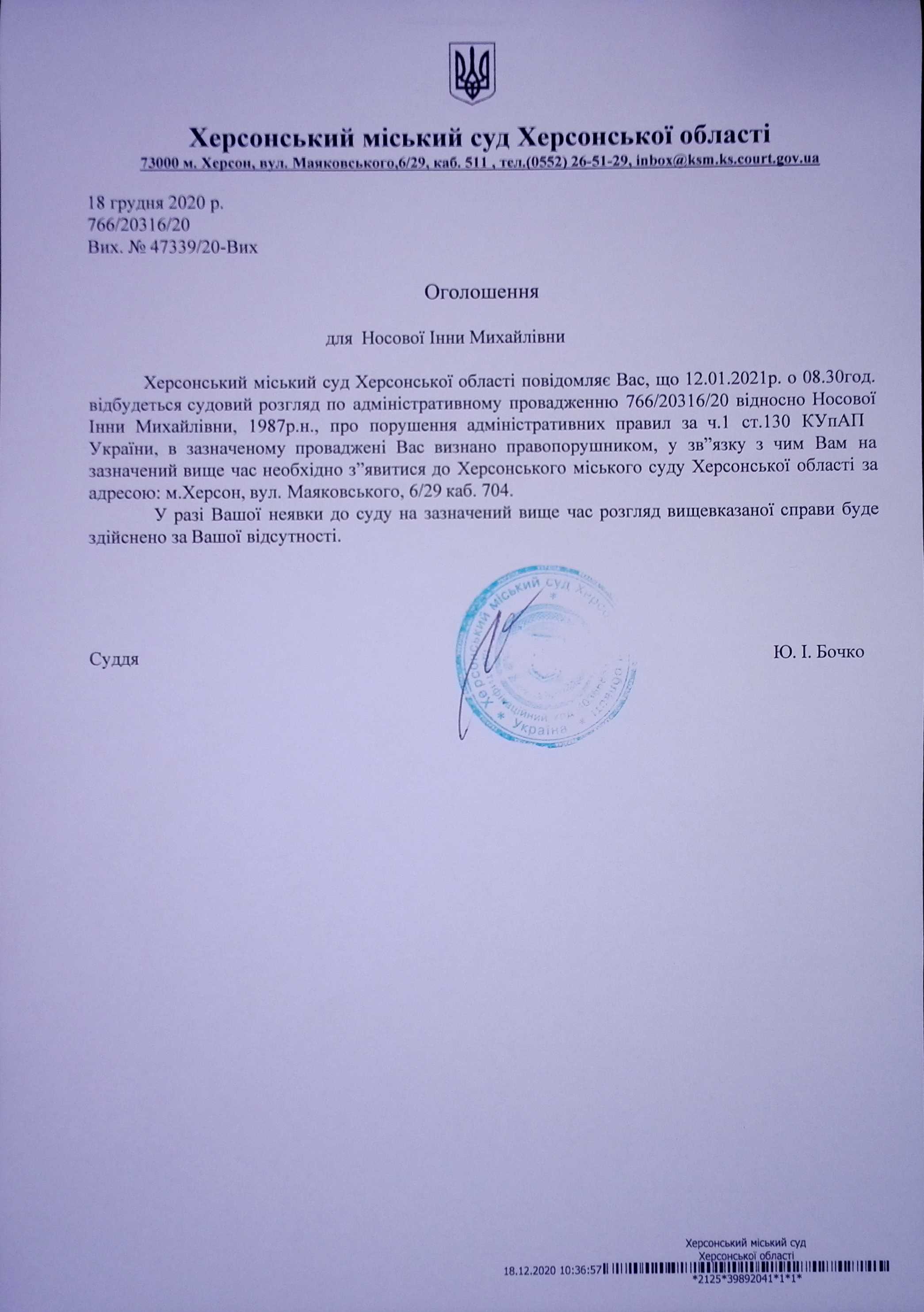 ОГОЛОШЕННЯ для Носової Інни Михайлівни