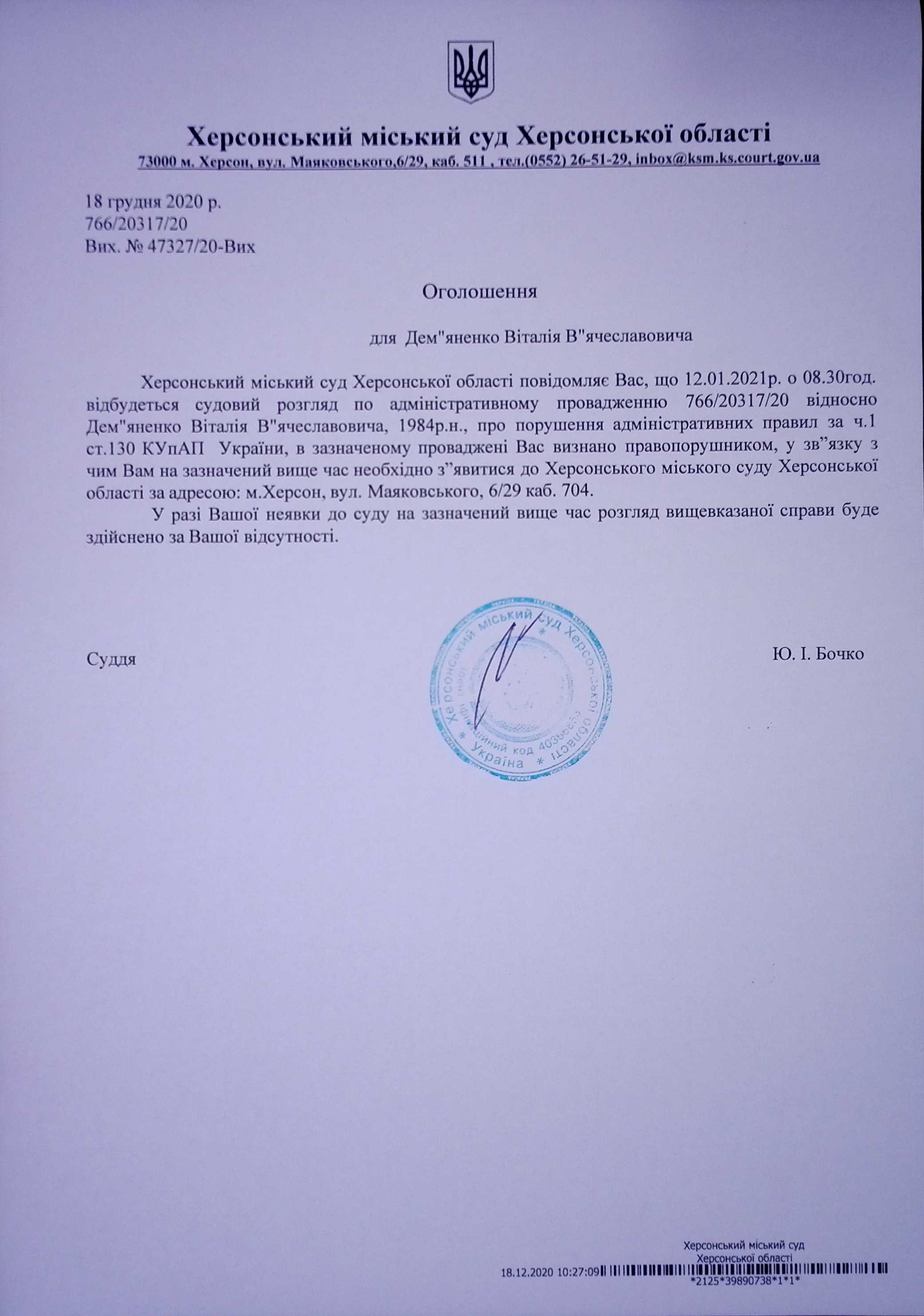 ОГОЛОШЕННЯ ПРО ВИКЛИК ДО СУДУ