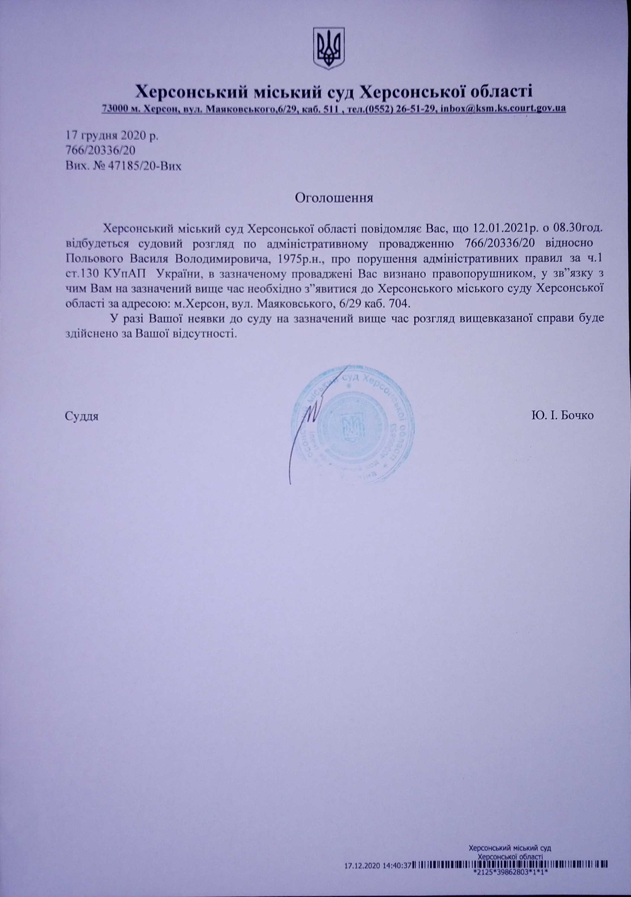 ОГОЛОШЕННЯ ПРО ВИКЛИК ДО СУДУ