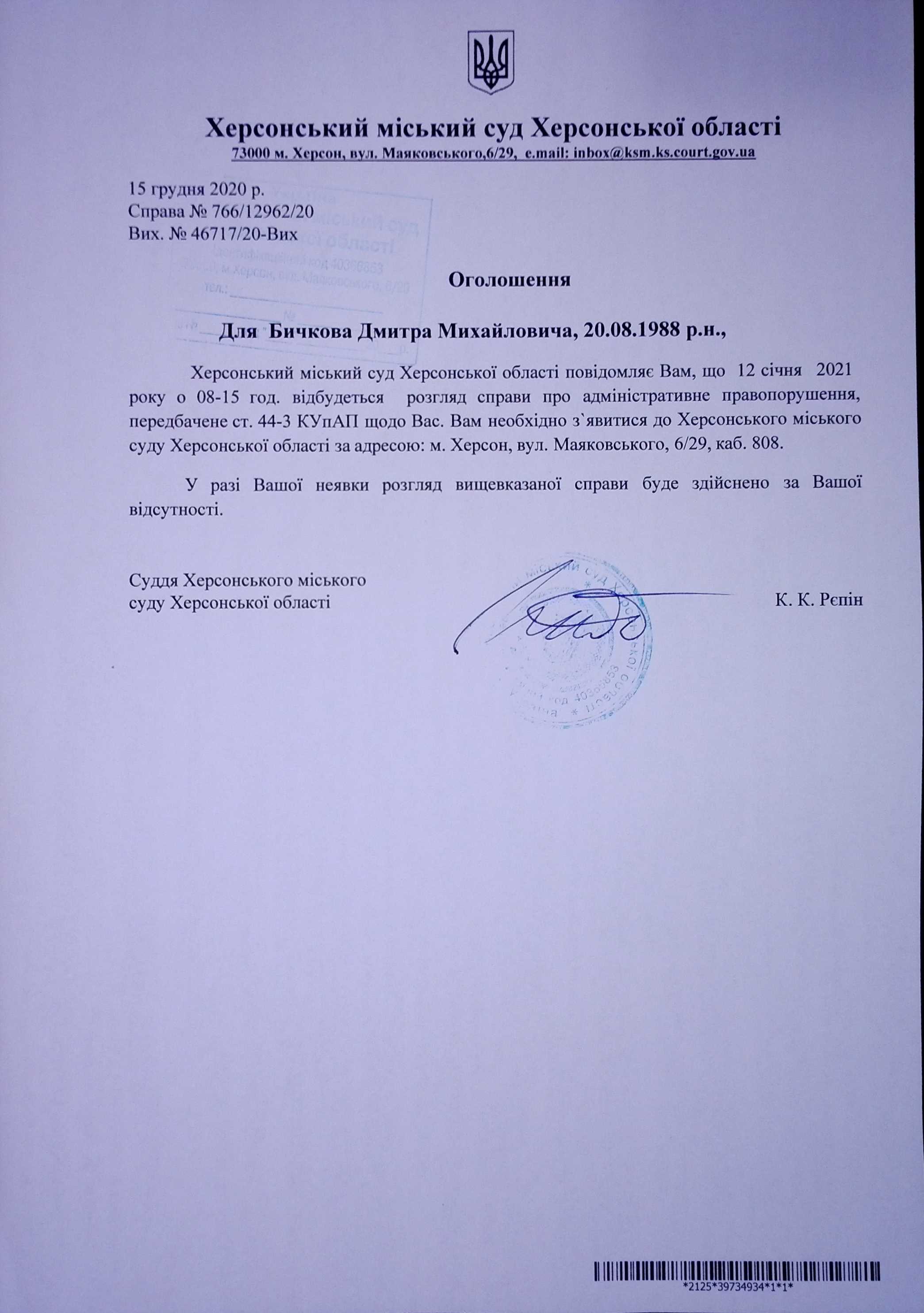 ОГОЛОШЕННЯ для Бичкова Дмитра Михайловича