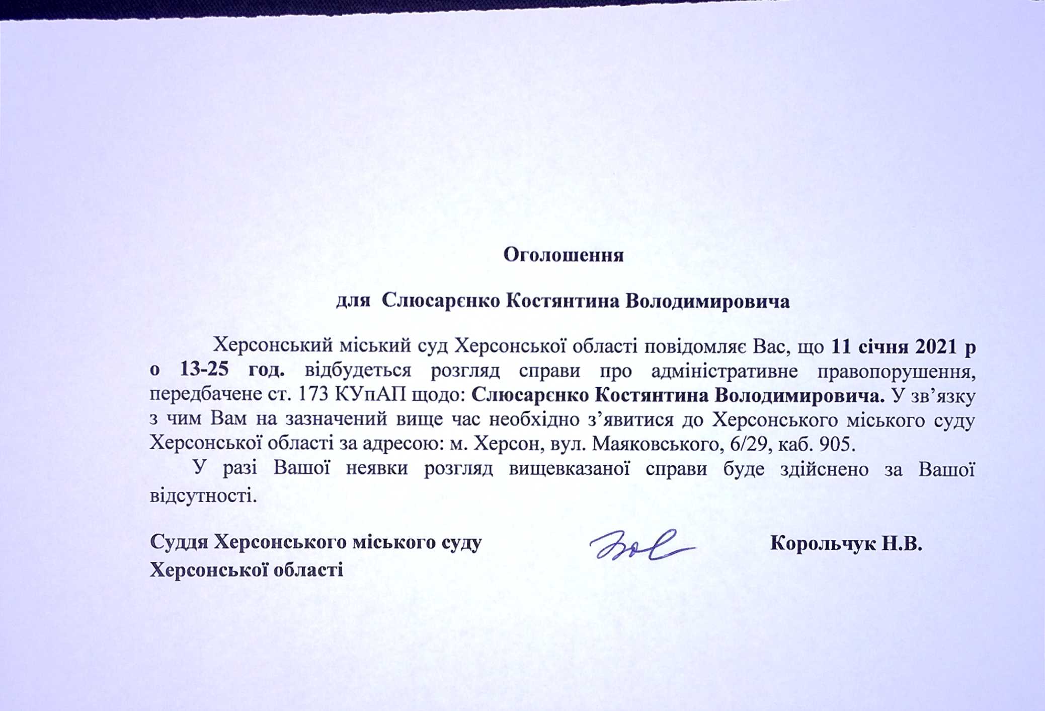 ОГОЛОШЕННЯ для Слюсарєнко Костянтина Володимировича