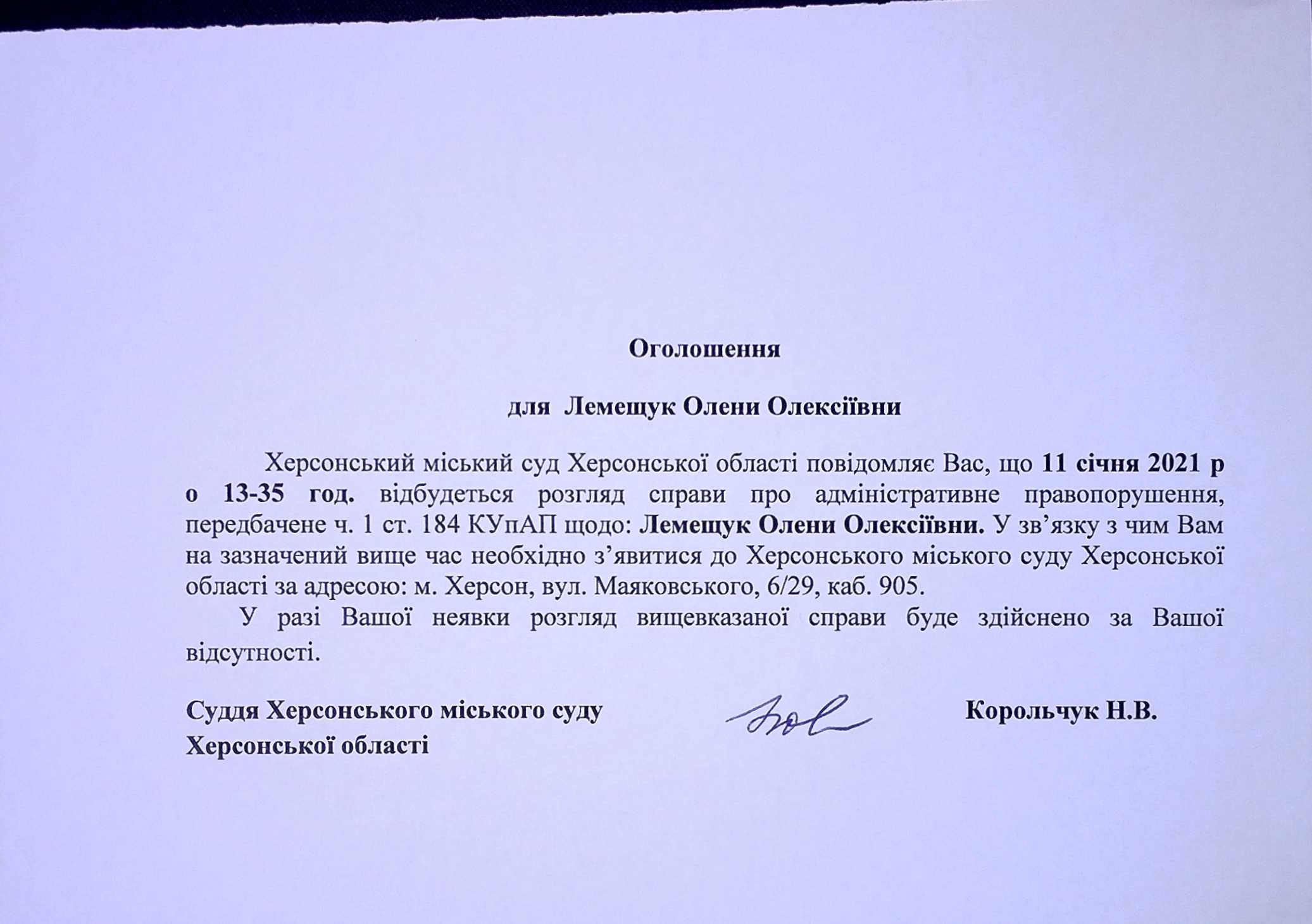 ОГОЛОШЕННЯ для Лемещук Олени Олексіївни
