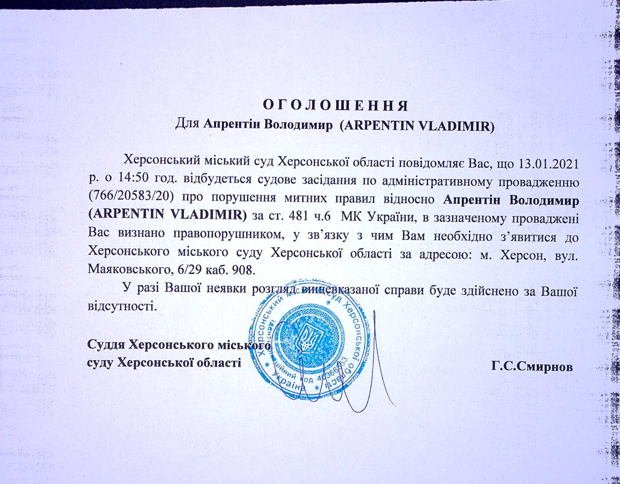 ОГОЛОШЕННЯ для Апрентіна Володимира (APRENTIN VLADIMIR)