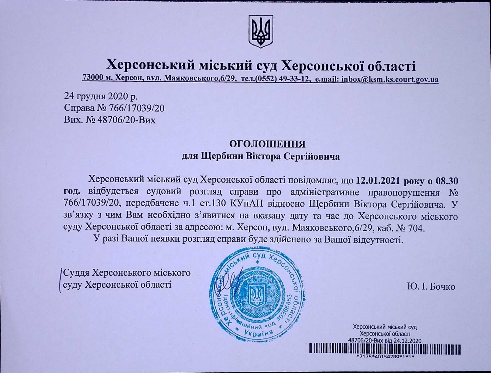 ОГОЛОШЕННЯ ПРО ВИКЛИК ДО СУДУ