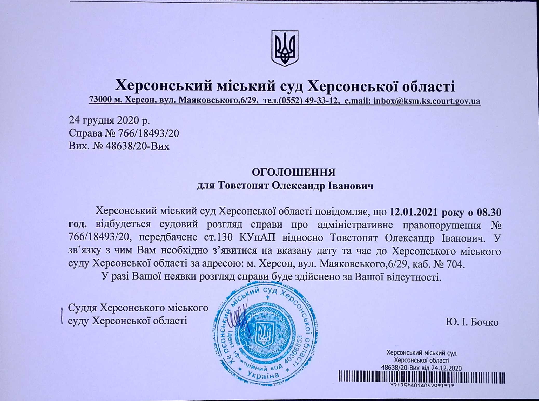 ОГОЛОШЕННЯ для Товстопят Олександра Івановича