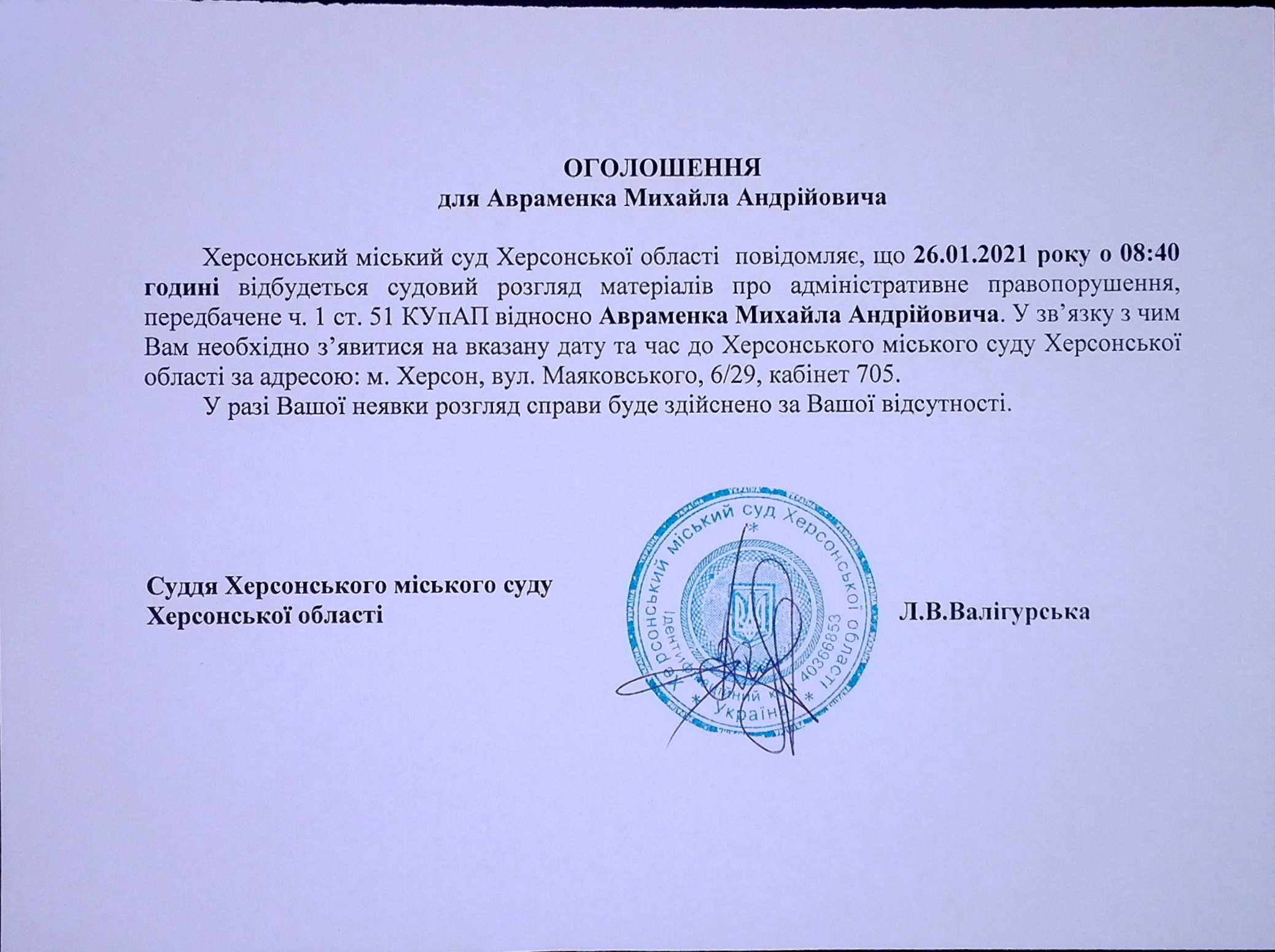 ОГОЛОШЕННЯ для Авраменка Михайла Андрійовича