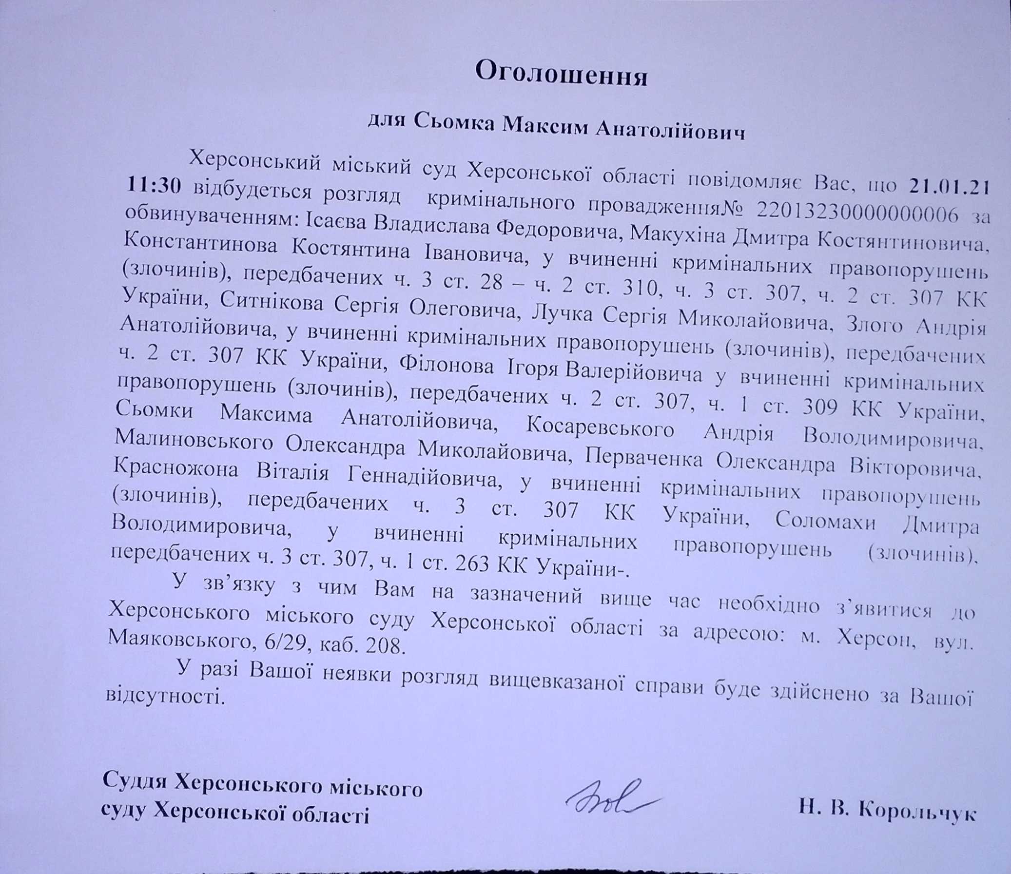 ОГОЛОШЕННЯ ПРО ВИКЛИК ДО СУДУ