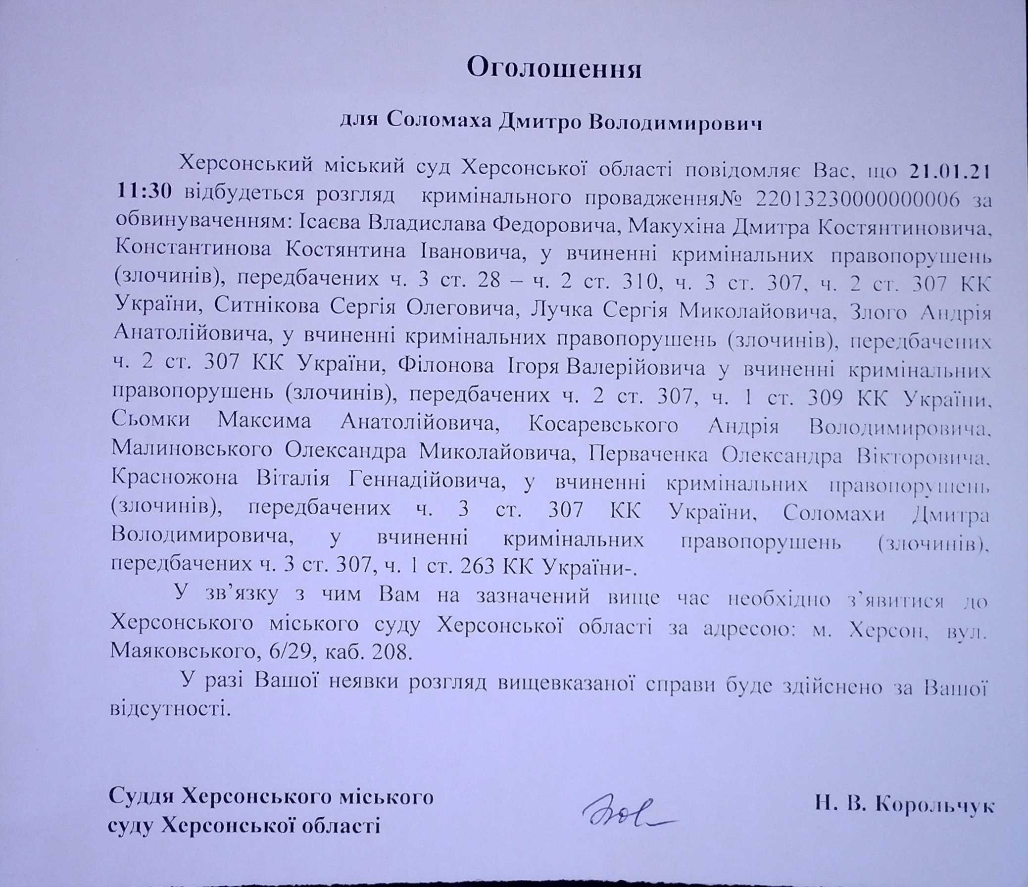 ОГОЛОШЕННЯ ПРО ВИКЛИК ДО СУДУ