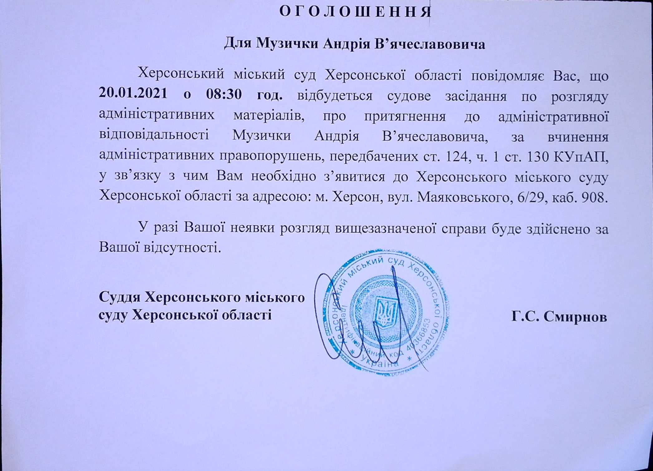 ОГОЛОШЕННЯ для Музички Андрія В`ячеславовича