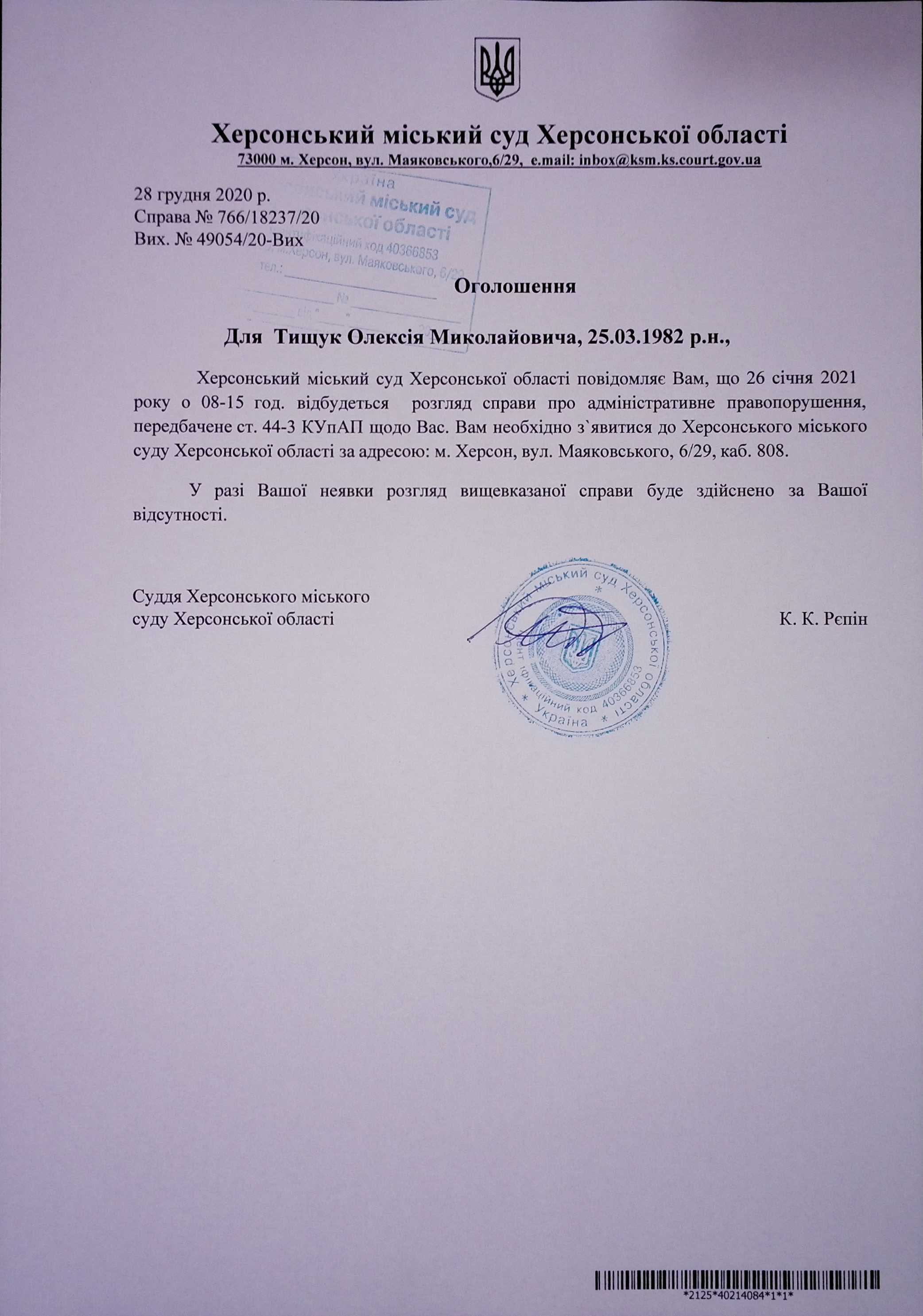ОГОЛОШЕННЯ для Тищук Олексія Миколайовича