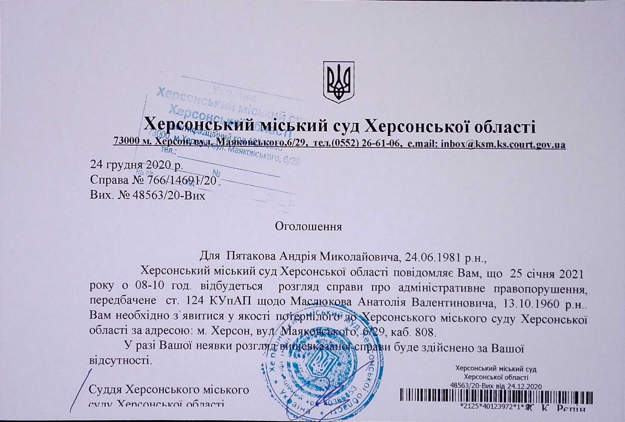 ОГОЛОШЕННЯ для Пятакова Андрія Миколайовича