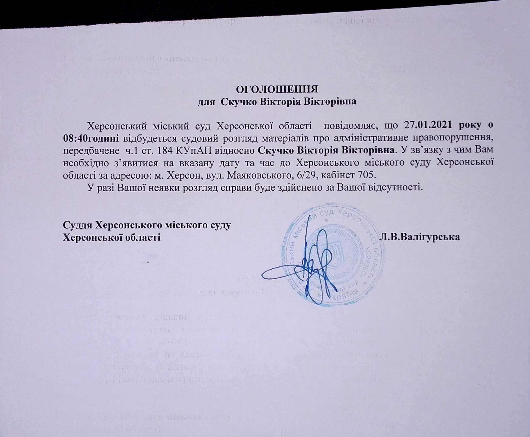 ОГОЛОШЕННЯ для Скучко Вікторії Вікторівни