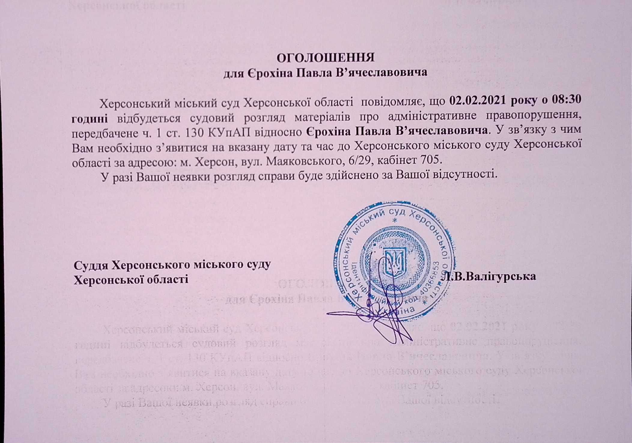 ОГОЛОШЕННЯ для Єрохіна Павла В`ячеславовича