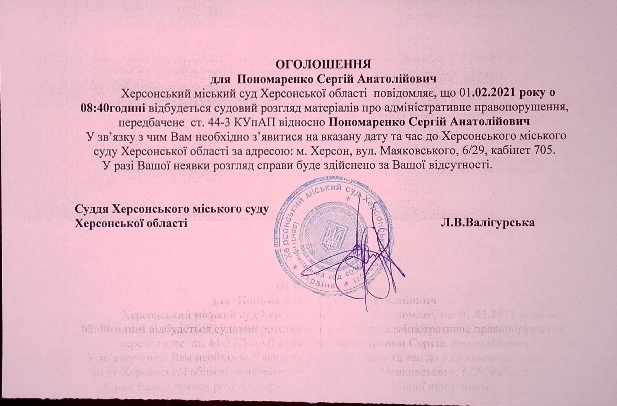 ОГОЛОШЕННЯ для Пономаренко Сергія Анатолійовича