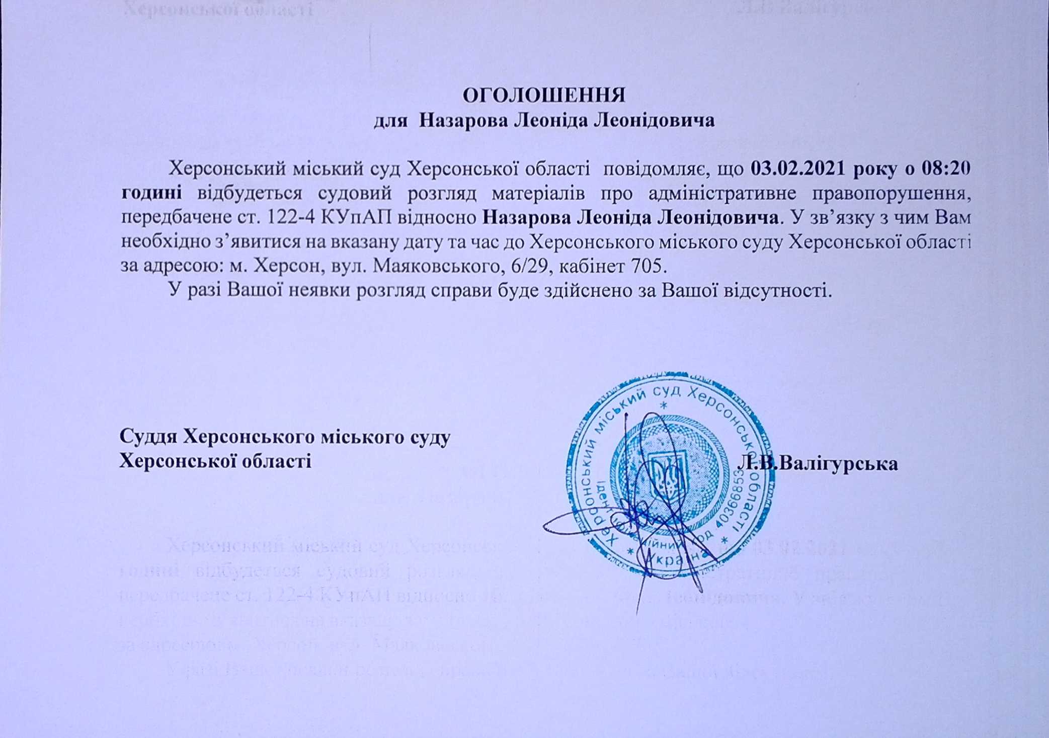 ОГОЛОШЕННЯ для Назарова Леоніда Леонідовича