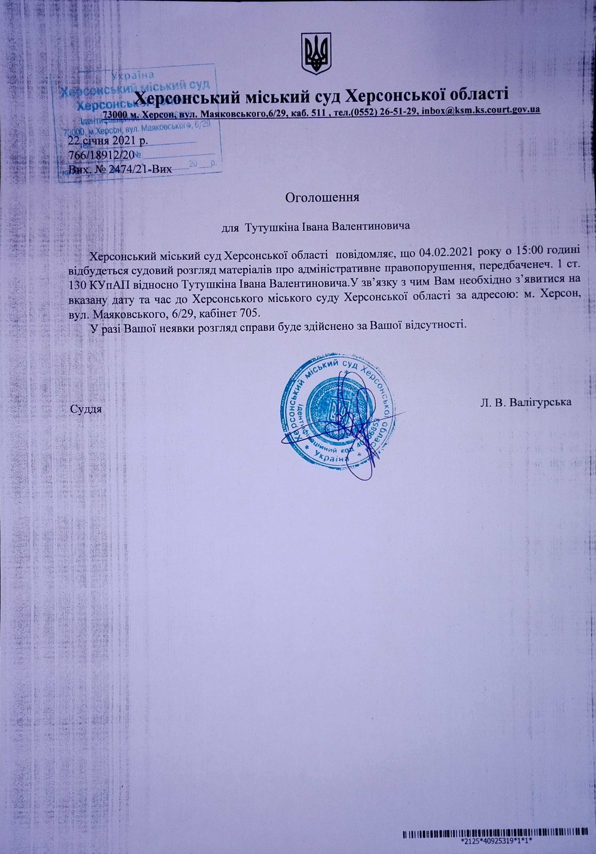 ОГОЛОШЕННЯ для Тутушкіна Івана Валентиновича