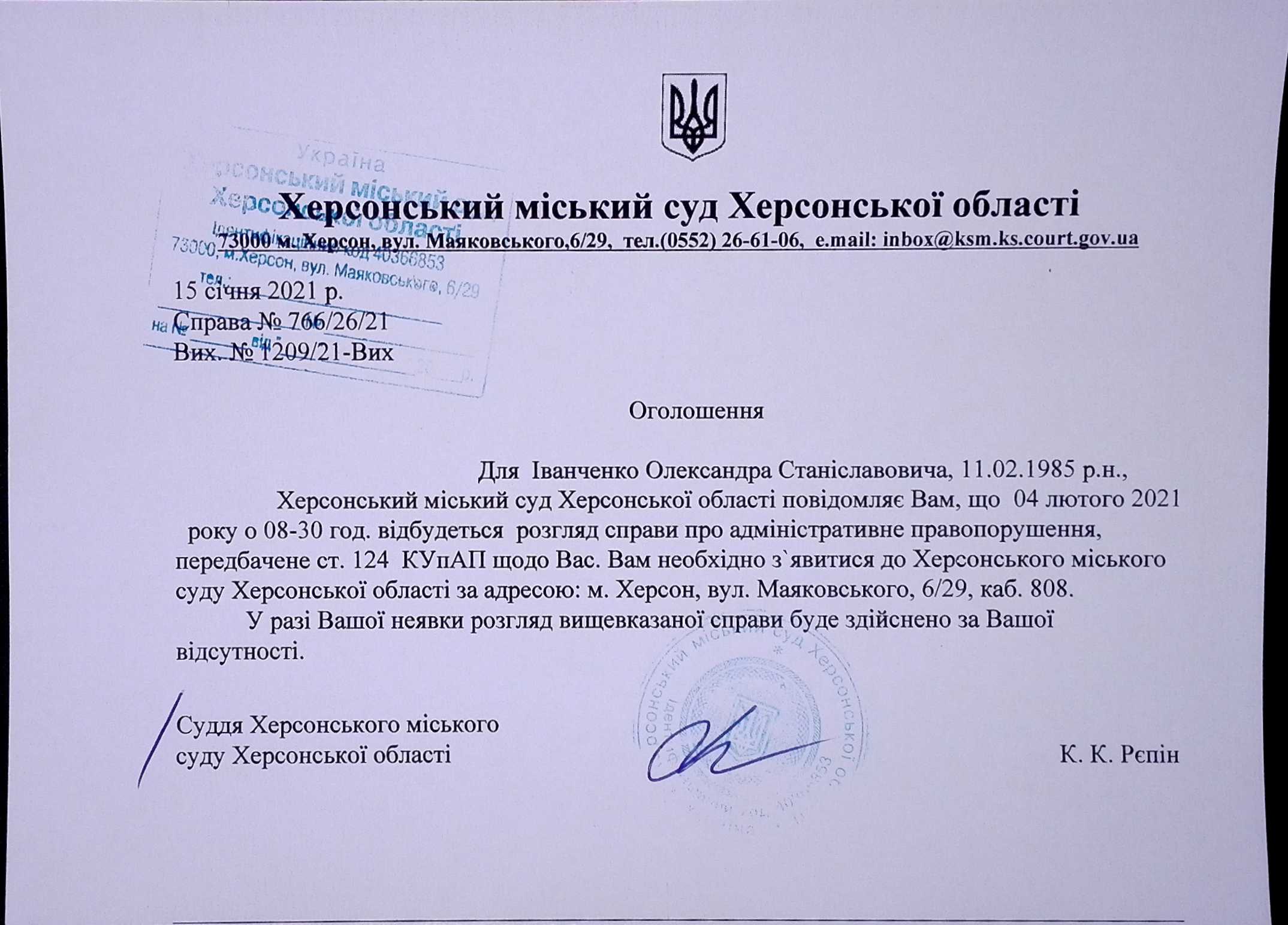 ОГОЛОШЕННЯ для Іванченко Олександра Станіславовича