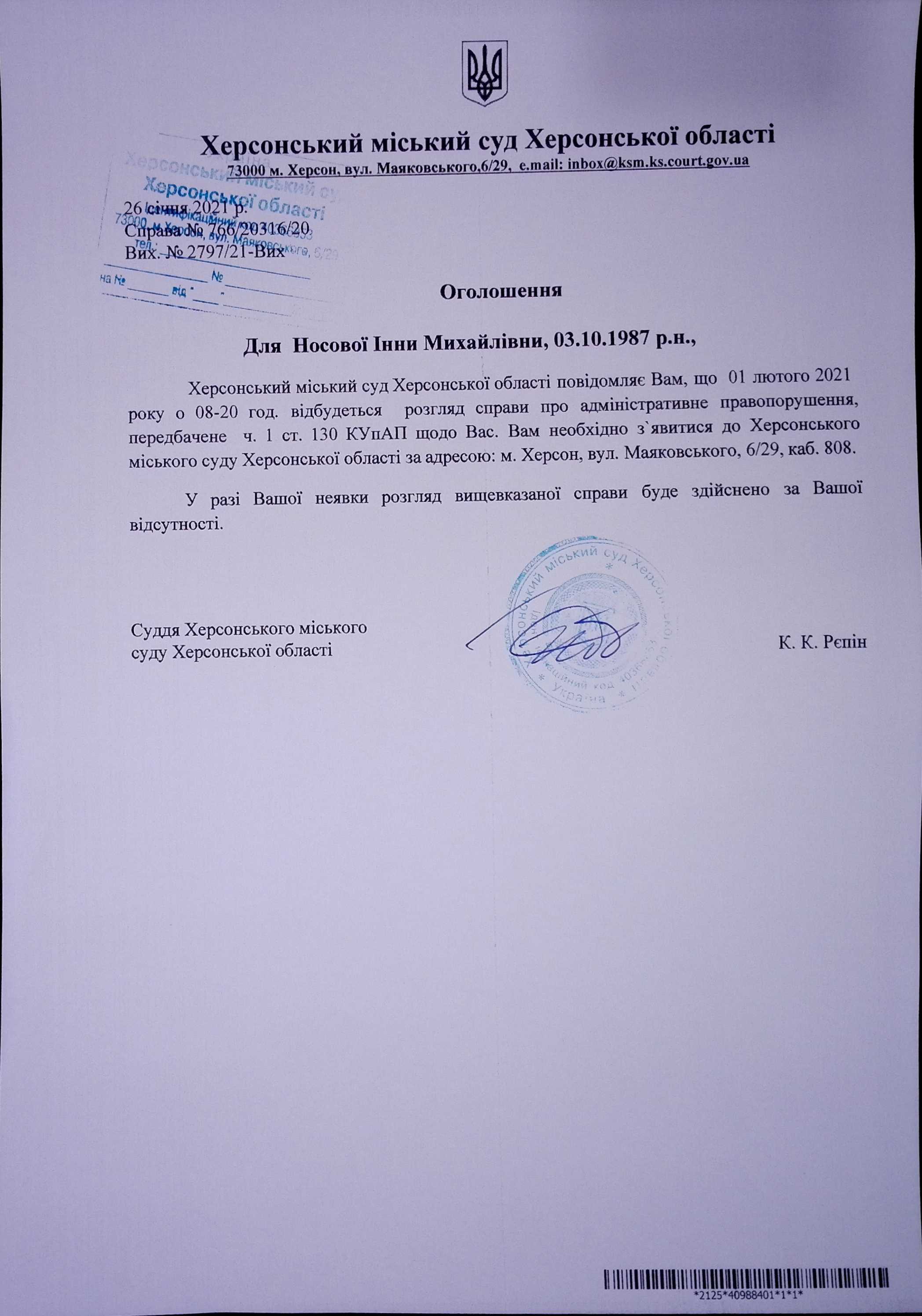ОГОЛОШЕННЯ для Носової Інни Михайлівни