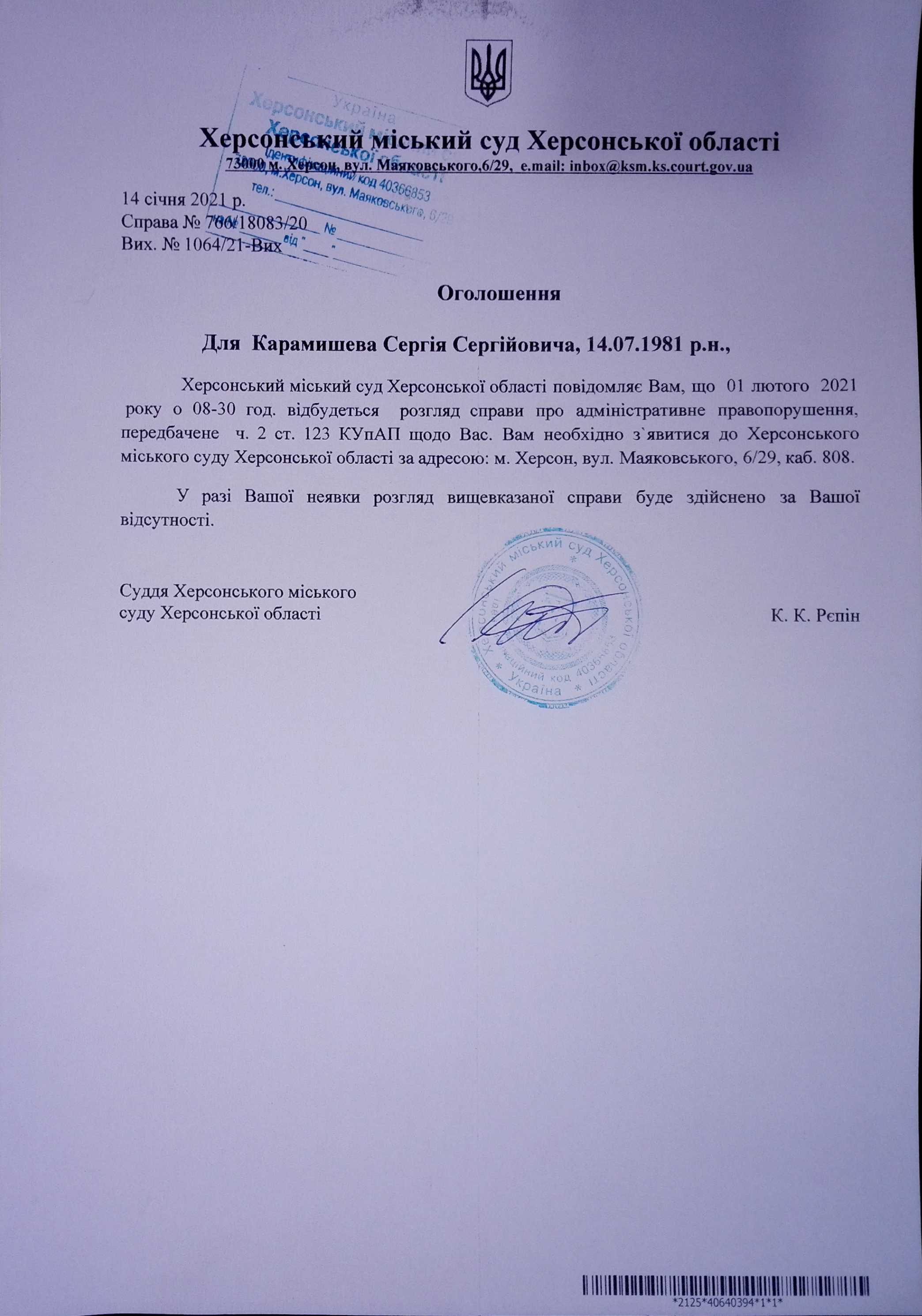 ОГОЛОШЕННЯ для Карамишева Сергія Сергійовича