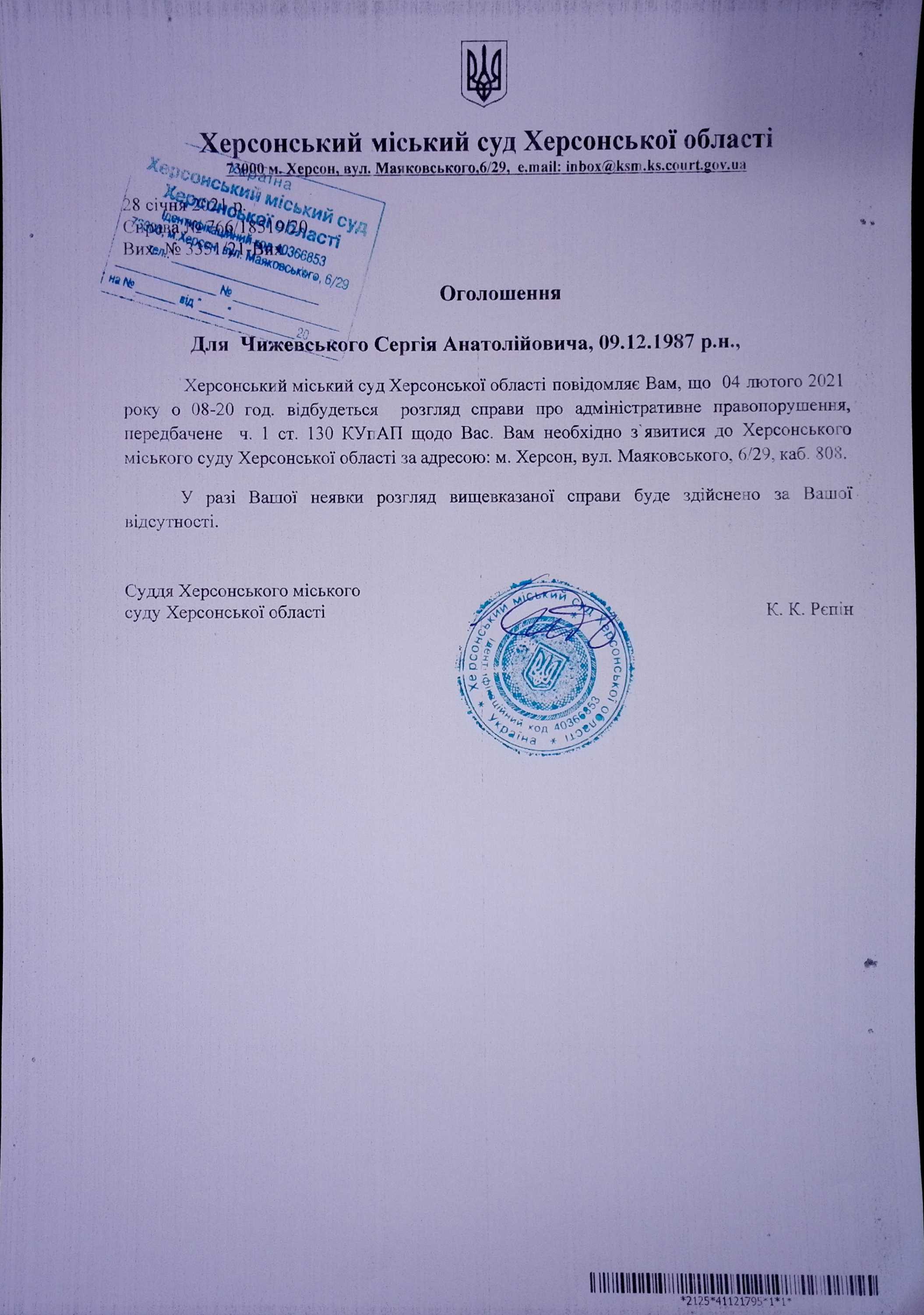 ОГОЛОШЕННЯ для Чижевського Сергія Анатолійовича