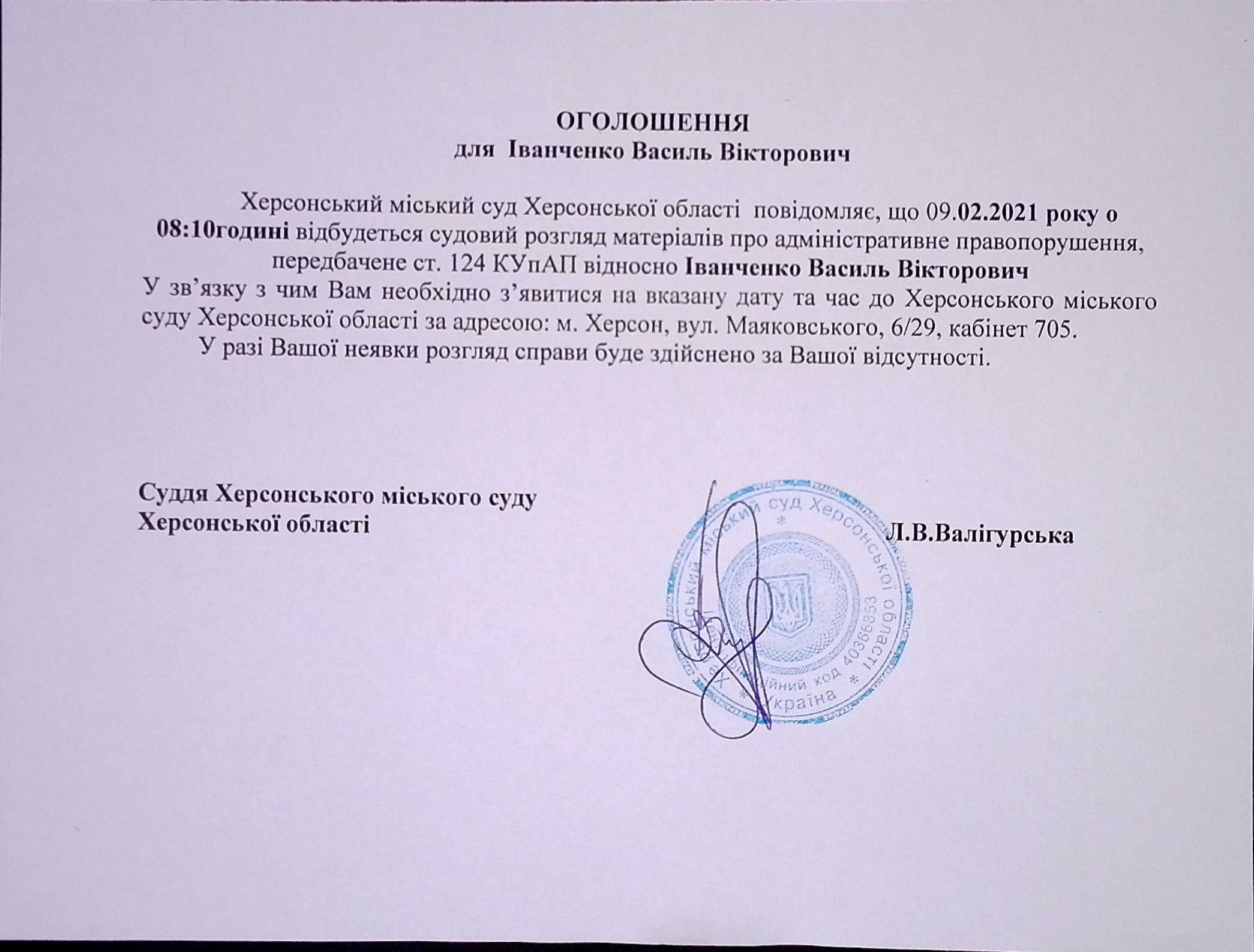 ОГОЛОШЕННЯ для Іванченко Василя Вікторовича